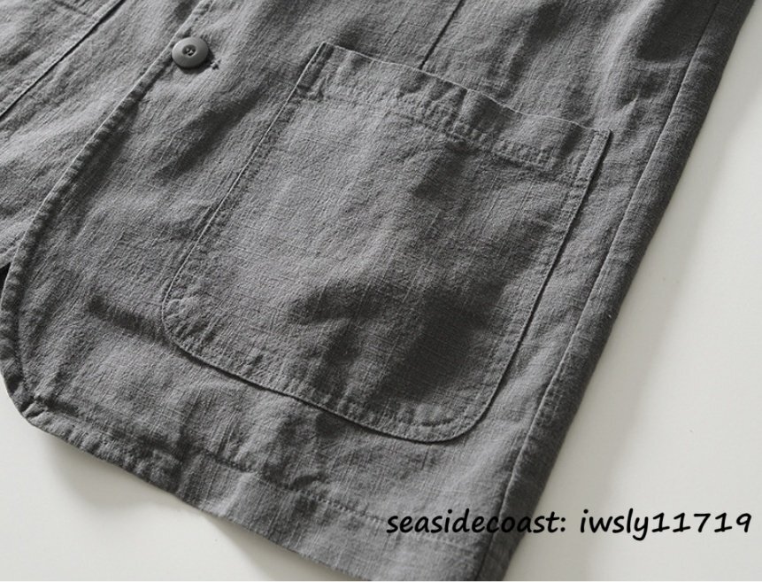 超希少*テーラードジャケット メンズ 春夏秋 リネンジャケット 麻100% 無地 清涼感 通気性 ブレザー 麻スーツ 紳士服 鮮やか グレー L