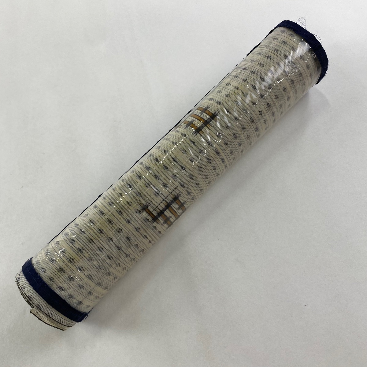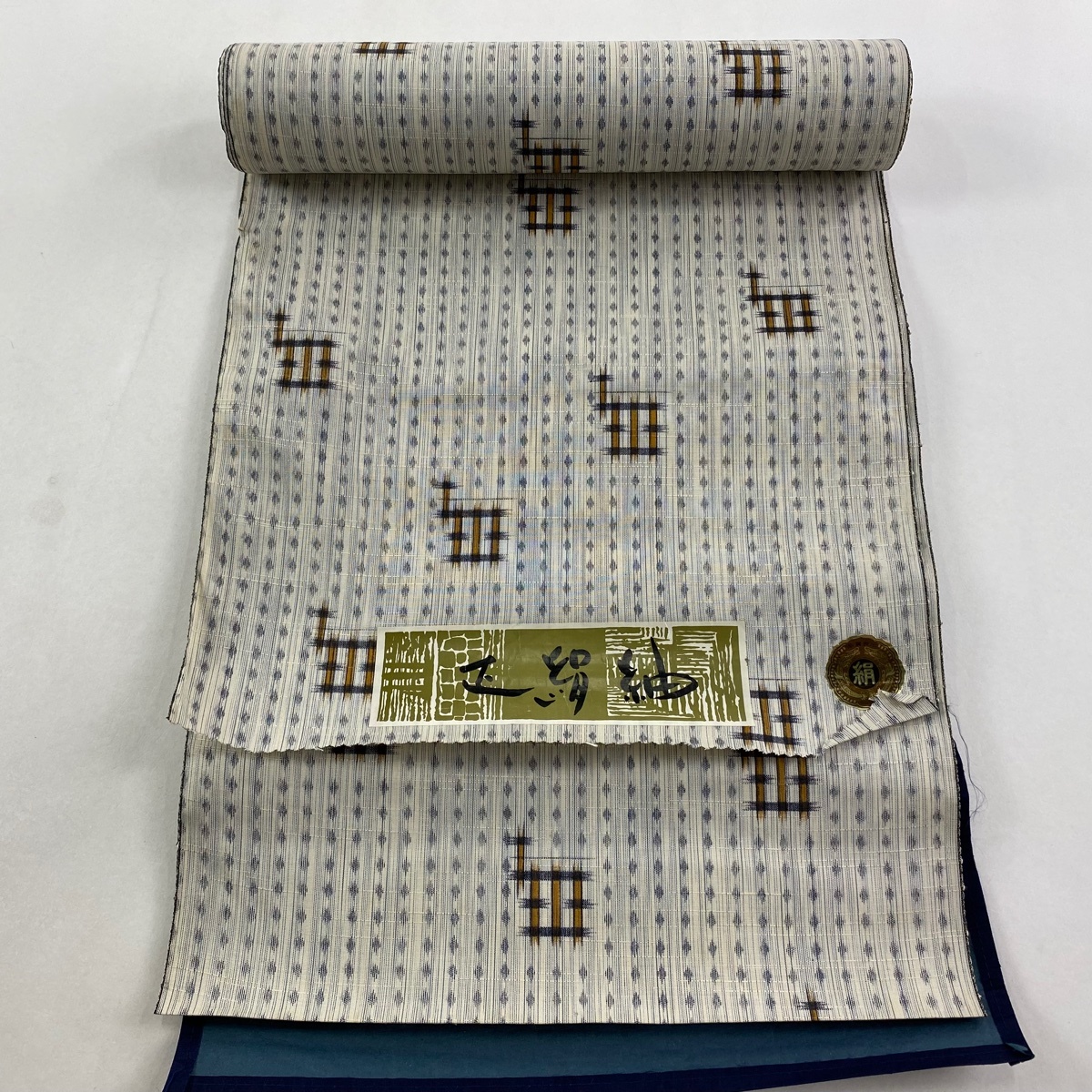 | 反物 秀品 紬 縞 幾何学 灰白 正絹 【中古】 |