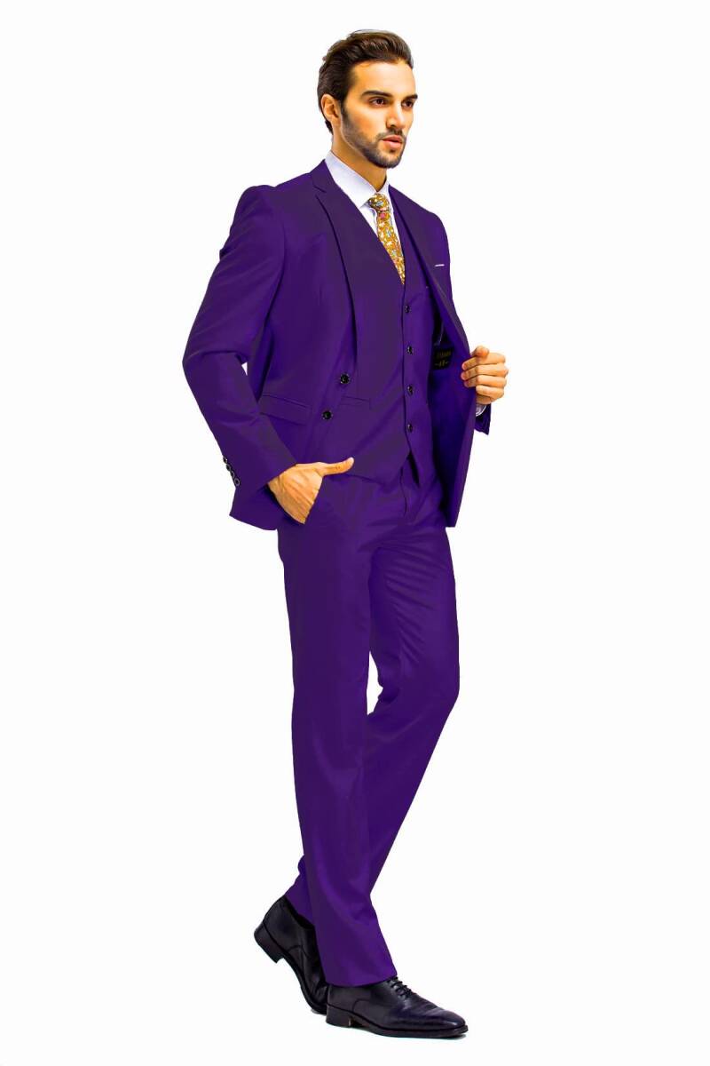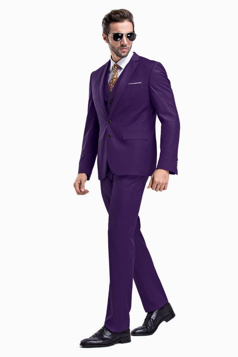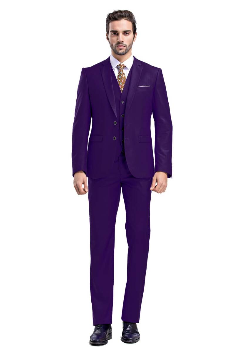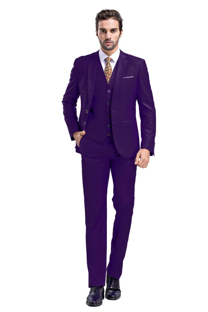 新品★スリーピース メンズ スーツ セットアップ 上下3点セット 2つボタン ビジネススーツ 紳士 就職 礼服 結婚式 パーティー パープル4XL