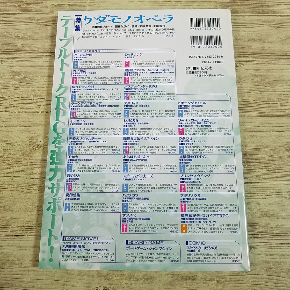 【ロール&ロール Vol.215】 著者:--- 出版社:新紀元社 発行年:2022年9月5日 初版 商品の状態:並。多少の使用感あり(経年変化含む) (折れ少々 / 汚れ少々 / ヨレ少々) 付属品: 備考: ■特集 ・ケダモノオペラ ■記事掲載TRPG ・アーカム計画 ・あおはるばーんっ ・あやびと ・異界戦記カオスフレアSC ・インセイン ・ウタカゼ ・虚構侵蝕TRPG ・光砕のリヴァルチャー ・サタスペ ・シノビガミ ・シャドウラン ・呪印感染 ・不知火 ・スタリィドール ・スチームパンクーズ ・ソード・ワールド2.5 ・ダークデイズドライブ ・天下繚乱 ・バケノカワ ・パスファインダーRPG ・ビギニングアイドル ・瞳逸らさぬイリスベイン ・フタリソウサ ・プリンセスウイング ・魔界転生ディスガイアTRPG ・ゆうやけこやけ ■ボードゲーム記事 ・ボードゲーム・ジャンクション ■コミック記事 ・スピタのコピタの! ■ゲームノベル記事 ・アドバンスト・ファイティング・ファンタジー第2版 ソロアドベンチャー「八幡謎風伝」 【ロール&ロールとは】 ロール&ロールはテーブルトークRPG(以下、TRPG)の専門雑誌です。 各種TRPGリプレイやサポート、ボードゲーム紹介の記事などが掲載されています。 【TRPGとは?】 TRPGとは「テーブルトーク・ロール・プレイング・ゲーム」の略で、会話をしながら(テーブルトーク)、役割(ロール)を演じる(プレイング)ゲームのことです。 プレイヤーは用意された架空世界(物語)の中の登場人物として、そのキャラクターを演じ、行動を選択し、新たなストーリーを作りだしていきます。 #TRPG雑誌 #TRPG #TRPGリプレイ #ロール&ロール #ソード・ワールド2.5 #パスファインダーRPG #アーカム計画 #ケダモノオペラ #ゲームノベル #ゲームブック #ソロアドベンチャー 当商品は中古品です。 状態については、写真もよく参考にしてください。 商品の状態についてできる限り確認・記載しておりますが、見落としがあった場合はなにとぞご容赦ください。 |