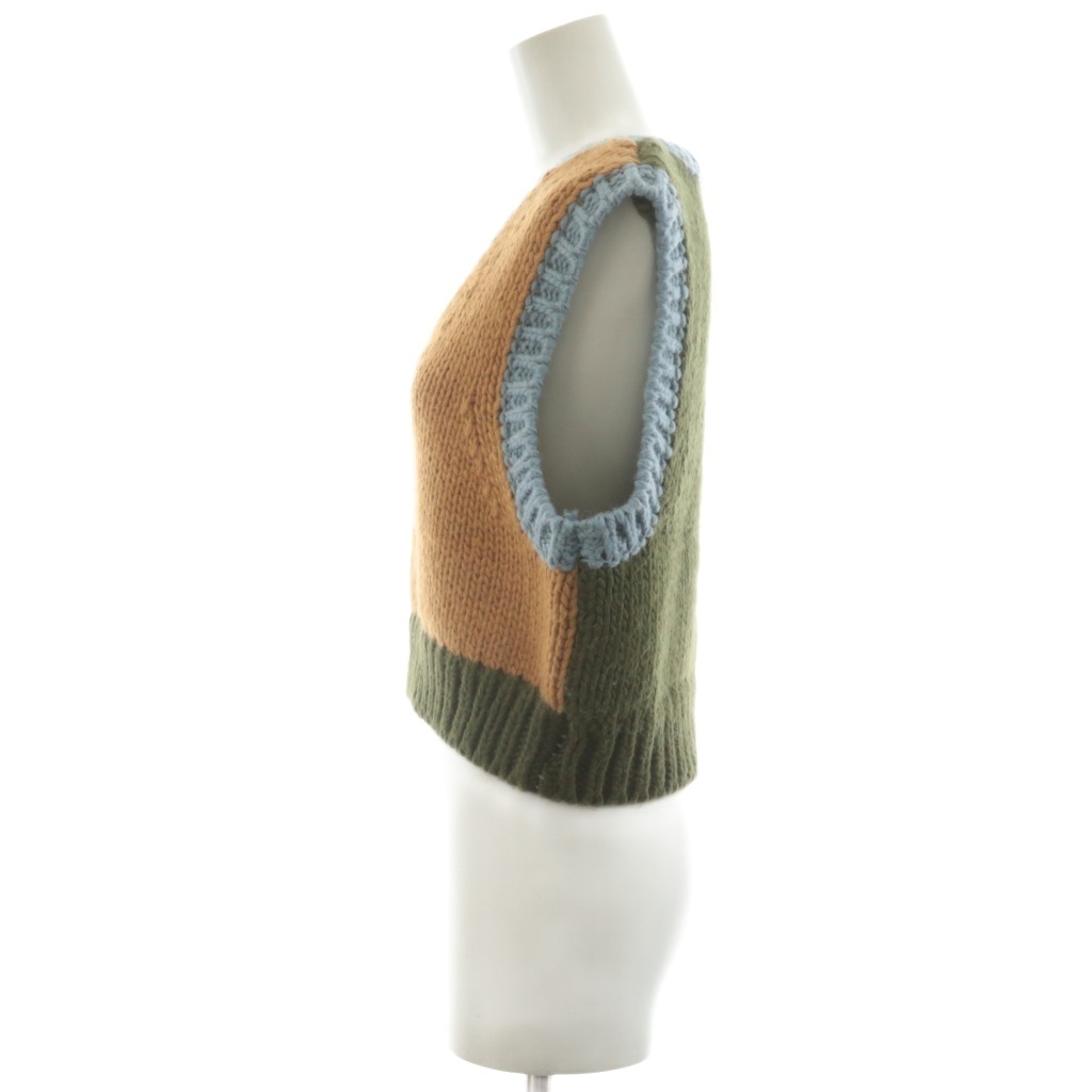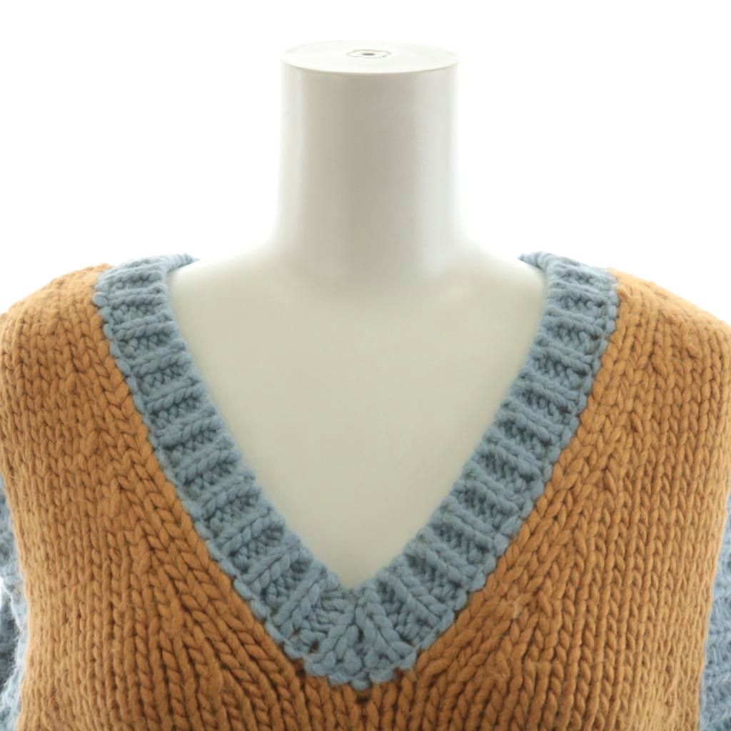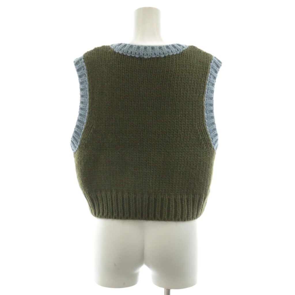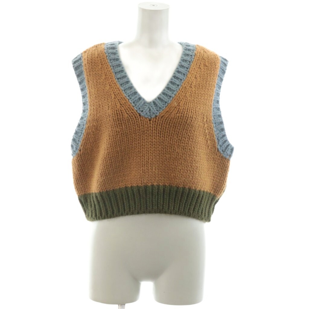 フリーダ Freada ニットベスト Vネック ローゲージ ショート丈 バイカラー ノースリーブ 茶 ブルー グリーン 1836252400001 /AU