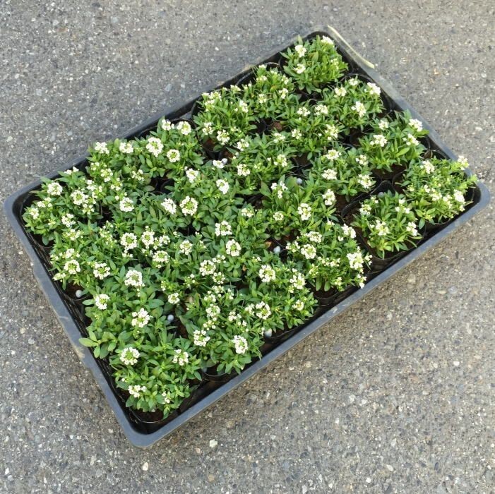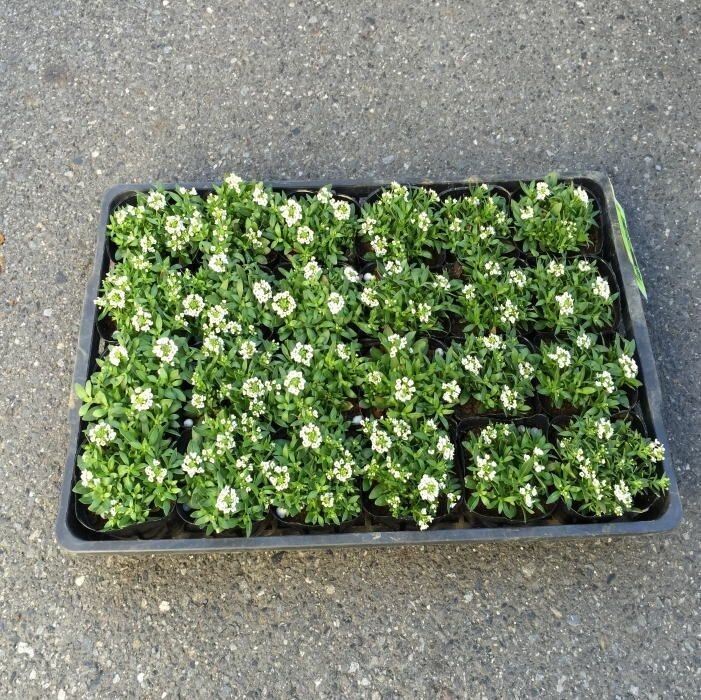 アリッサム白(3~3.5寸)1箱24ポット入りでの販売です。★花の卸売り販売です(販売は箱単位(単価は最小単位の価格です)。必ず1箱毎に送料かかります(送料無料ギフト及び★来店引き取りを除く)) ★ご注文に際し、最低発注単位を明記しております。申し込み数量欄には最低発注単位を入力下さい(最低発注単位の整数倍のご注文は可能ですが、送料は自動追加されません。後ほど、送料の追加修正の上メールいたします) ★メールは基本的に自動返信メール、ご注文承諾確認メール、発送完了メール(発送番号無し)のみにしております。(事務経費削減の為)簡単簡略なおとり引きで、安価販売を実現しております。ご協力お願いします。 ★お問い合わせ番号は基本的にお知らせしておりません。(ほとんどの方が必要としていない為)ご希望が有ればお知らせしますが、有料となります。(無料にしている荷造包装費200円を有料化。後からの問い合わせ番号発行はご容赦) ★大変神経を使う日時指定はお受けしていません。(大トラブルのもと) ★在庫はなるべく持たない。(新鮮な状態で発送したい為、ご注文いただいた後に新しい商品を入手し発送します。) ★ご入金確認後、新鮮な商品を入手し3営業日~7営業日(土日祭含め、最長10日)を目安に発送します。 その間のお問い合わせ等はご容赦頂ければ幸いです。 以上ご了承の上、ご注文頂けたら幸いです。