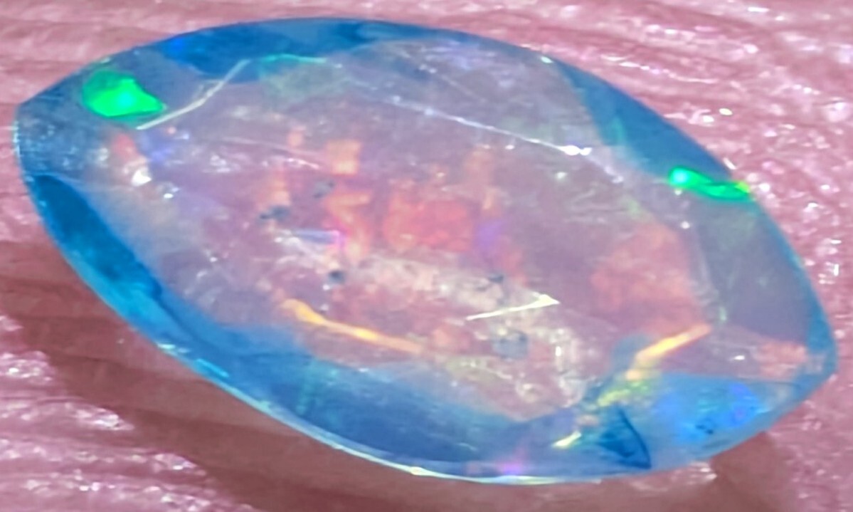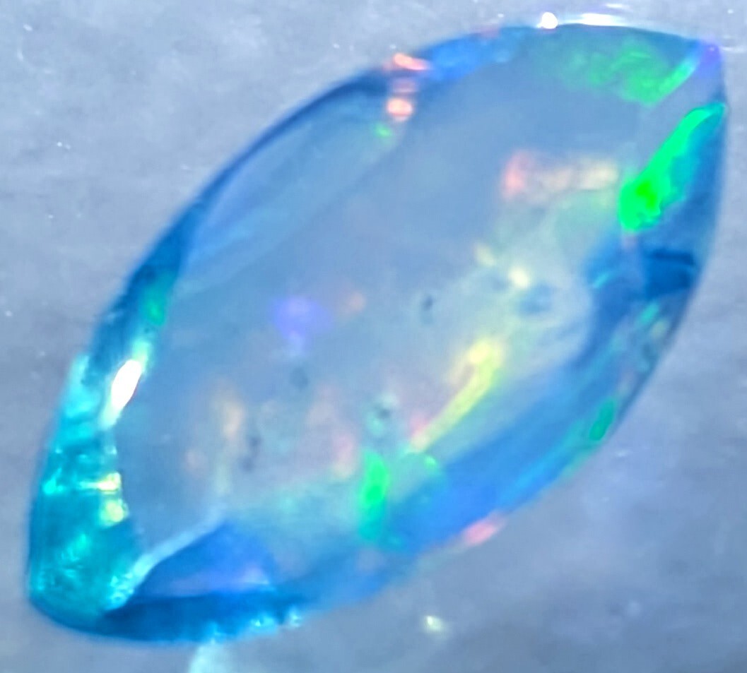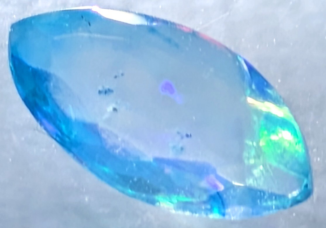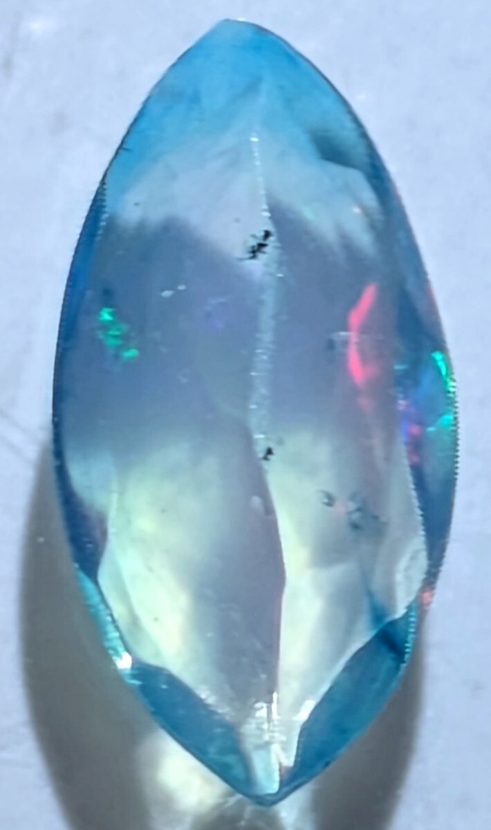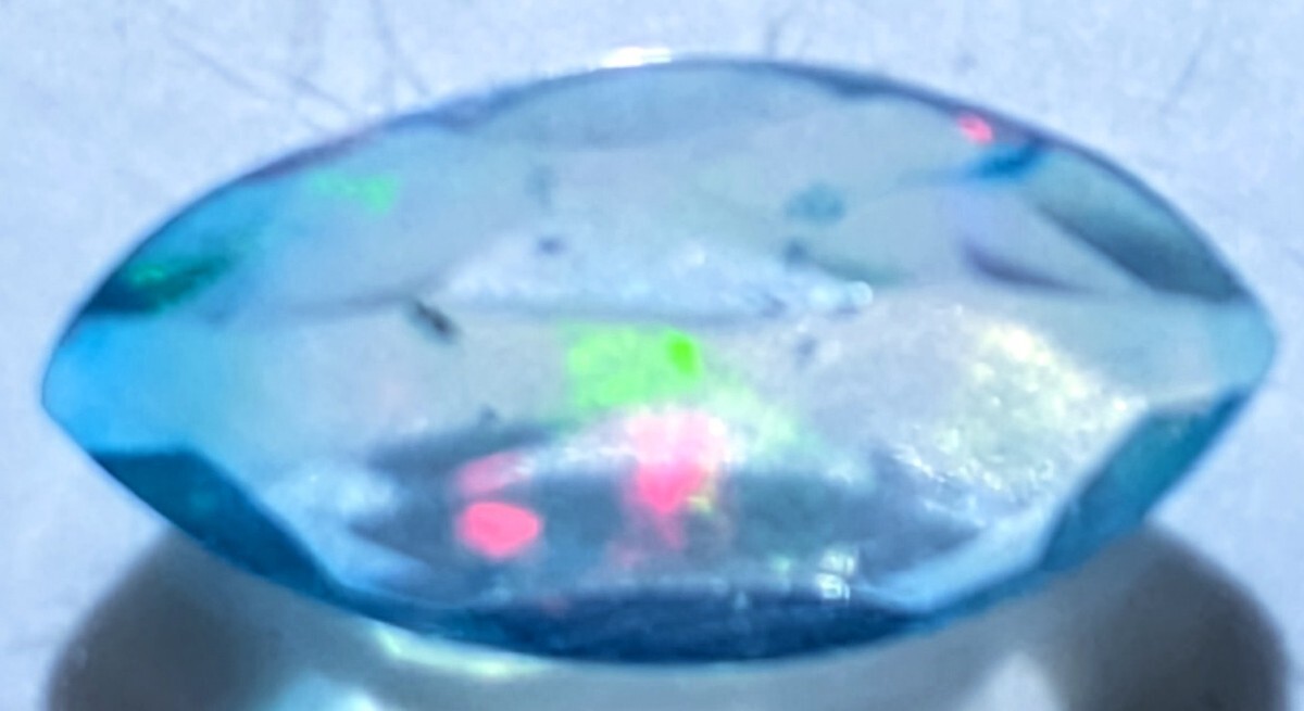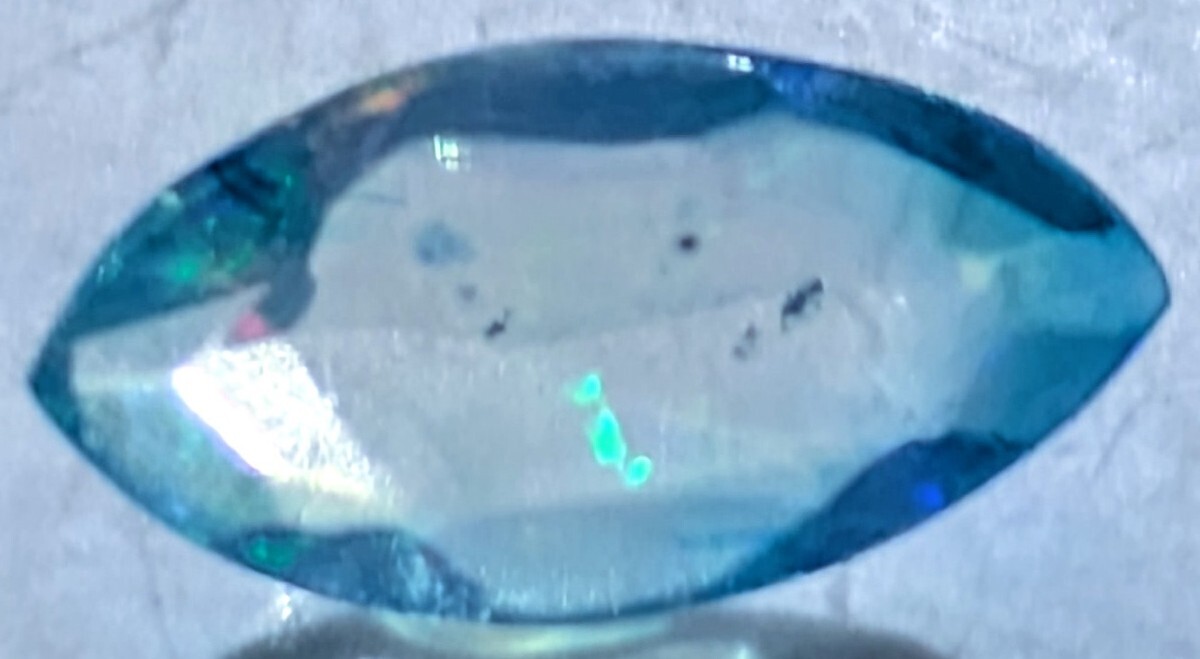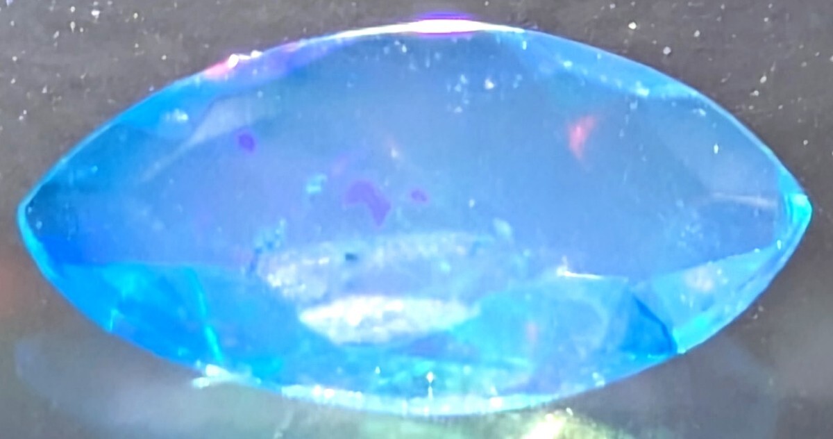 一部がネオンブルー色をしたクリアな結晶に遊色がキラキラ煌めく美しいクリスタル×ブルーのバイカラーオパールです