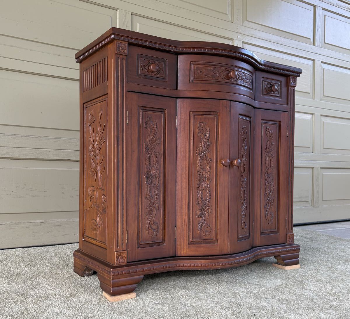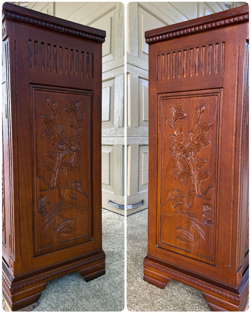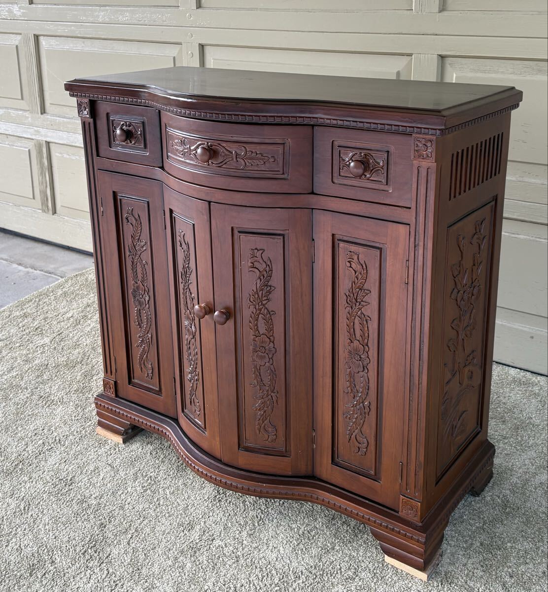 アンティーク調の木彫りコンソールキャビネットです。