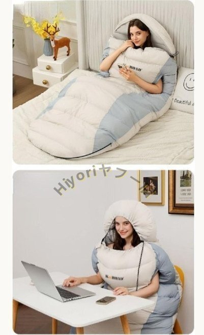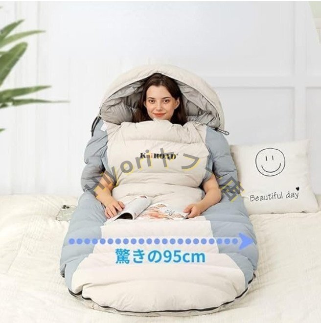 ■キャンプアウトドアウォームダウン寝袋、ユニークなデザイン、腕と足を伸ばすことができます。