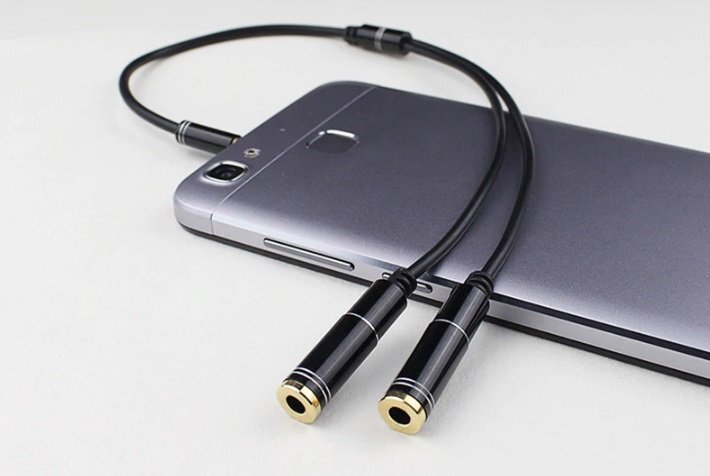 | オーディオ分配ケーブル 3.5mm オス-メスx2 ブラック 30cm |