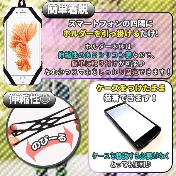 スマートフォンの四隅にホルダーを引っ掛けるだけの簡単着脱♪