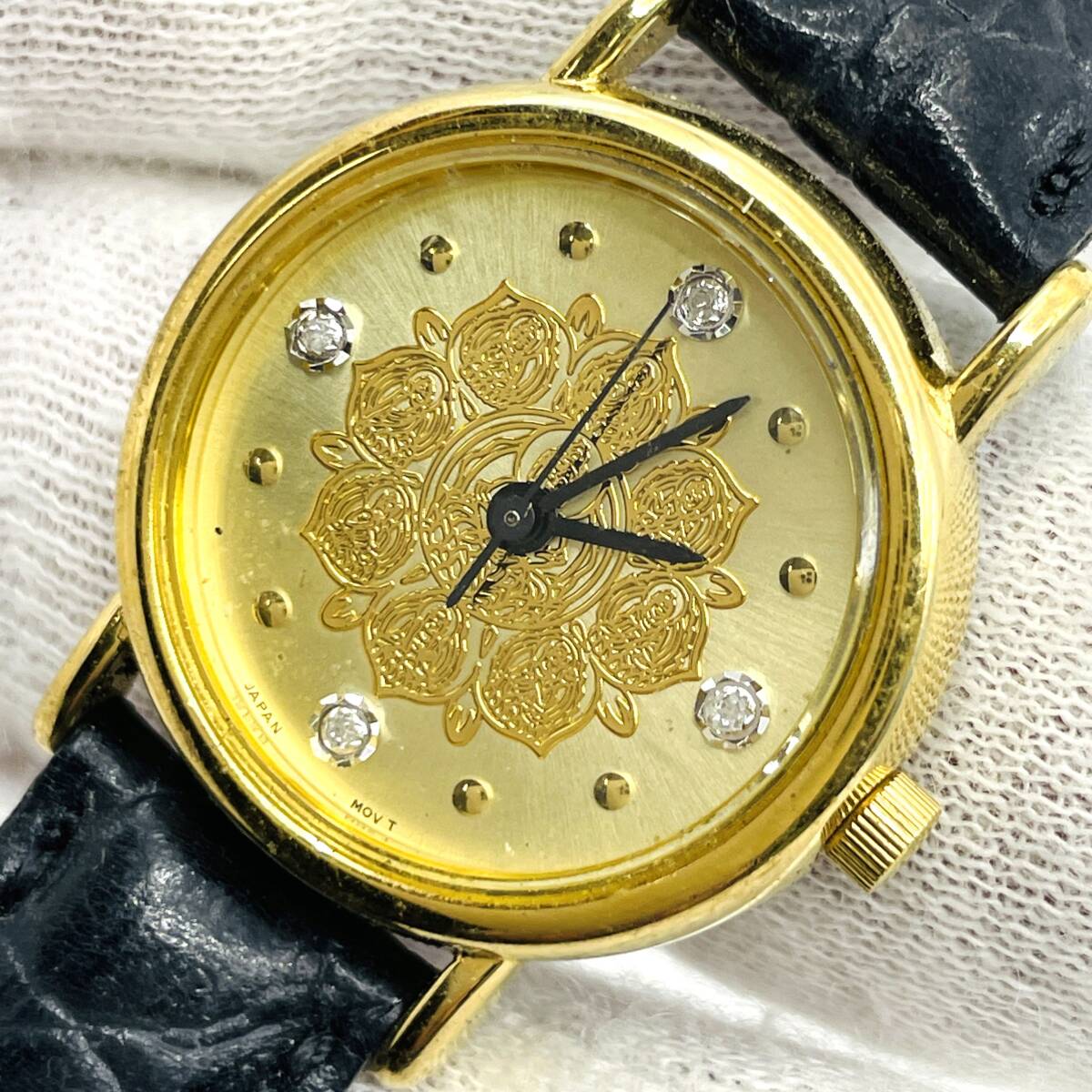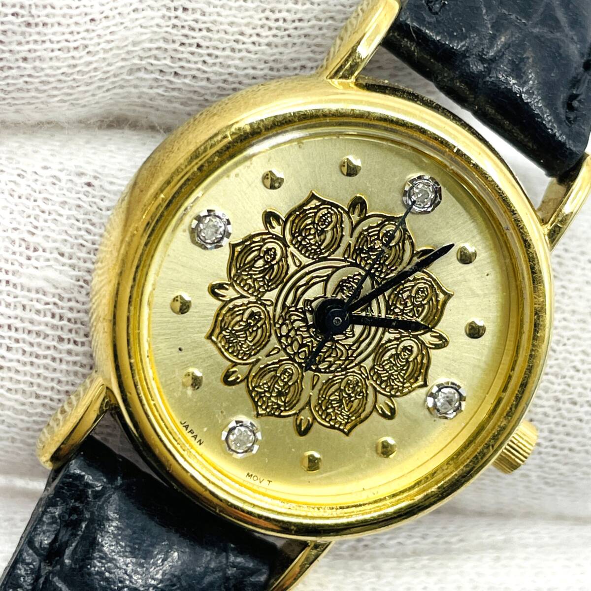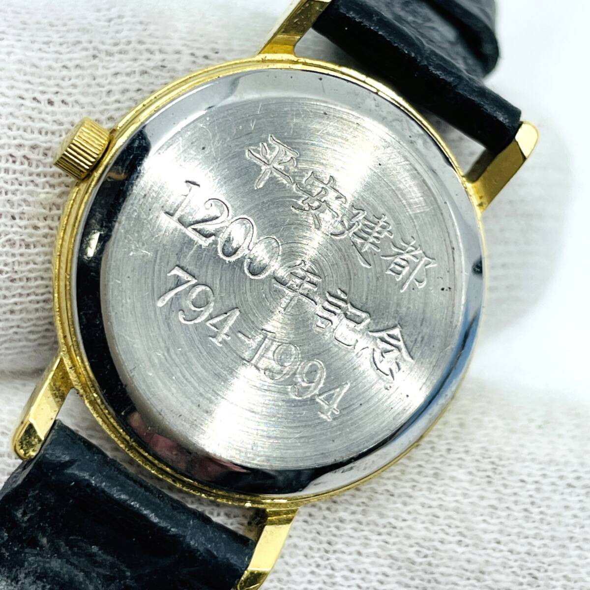 【動作未確認/ベルトジャンク】クォーツ 腕時計 ゴールド文字盤 3針 4P ゴージャス ラグジュアリー レザー794-1994 平安建都 1200年記念