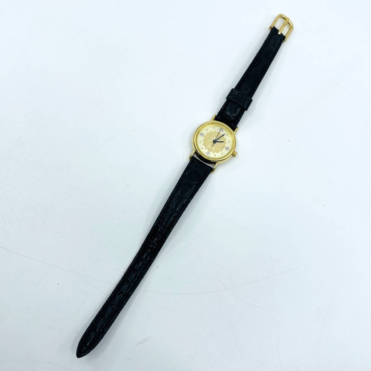 クォーツ 腕時計 ゴールド文字盤 3針 4P ゴージャス ラグジュアリー ラウンド レザーベルト レディース