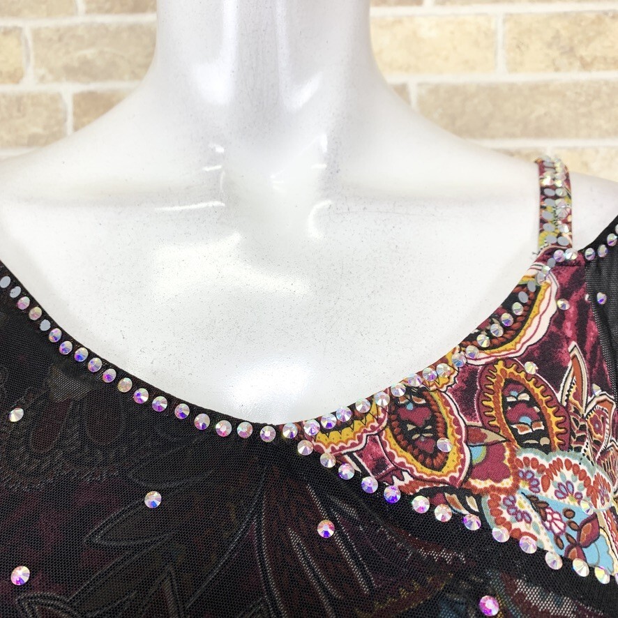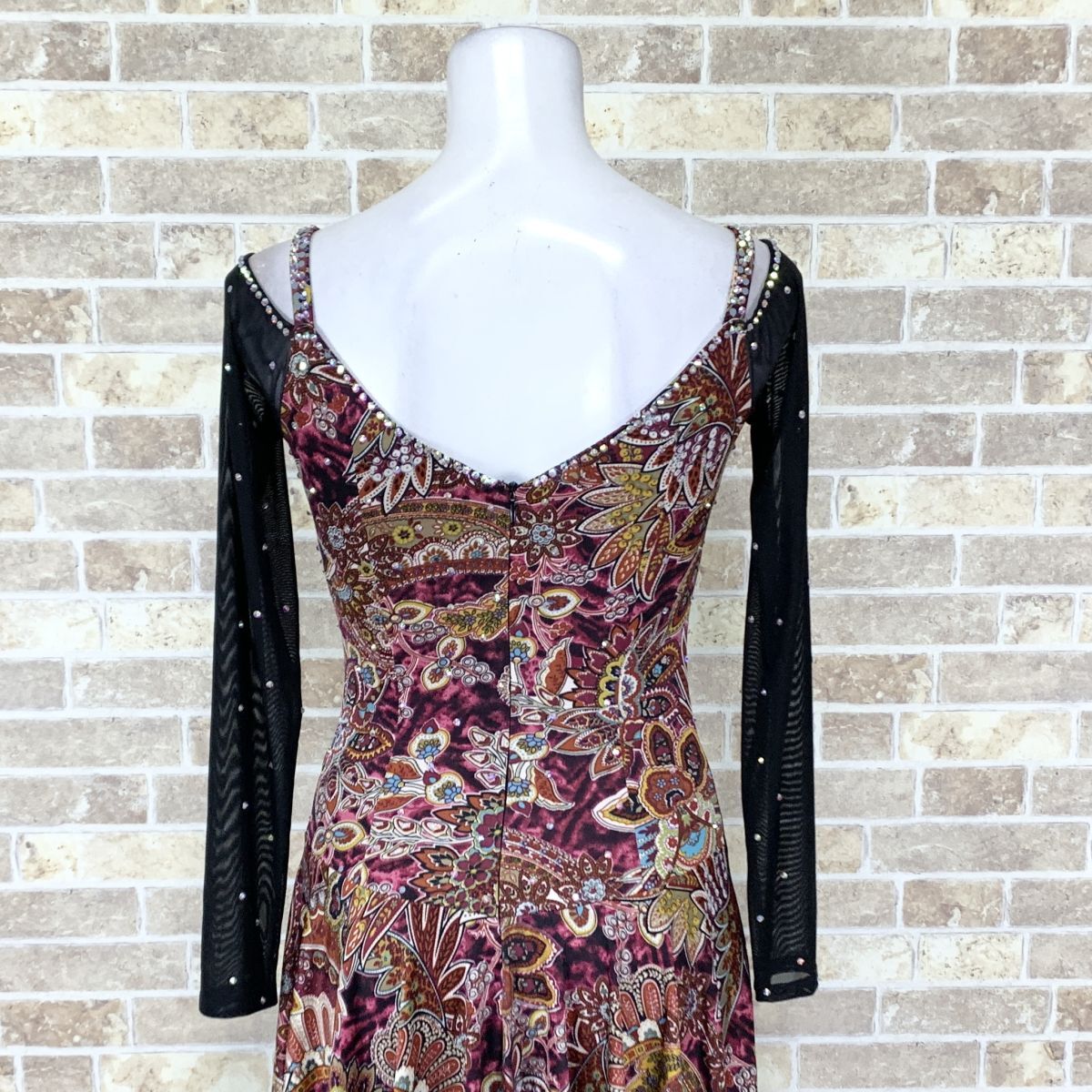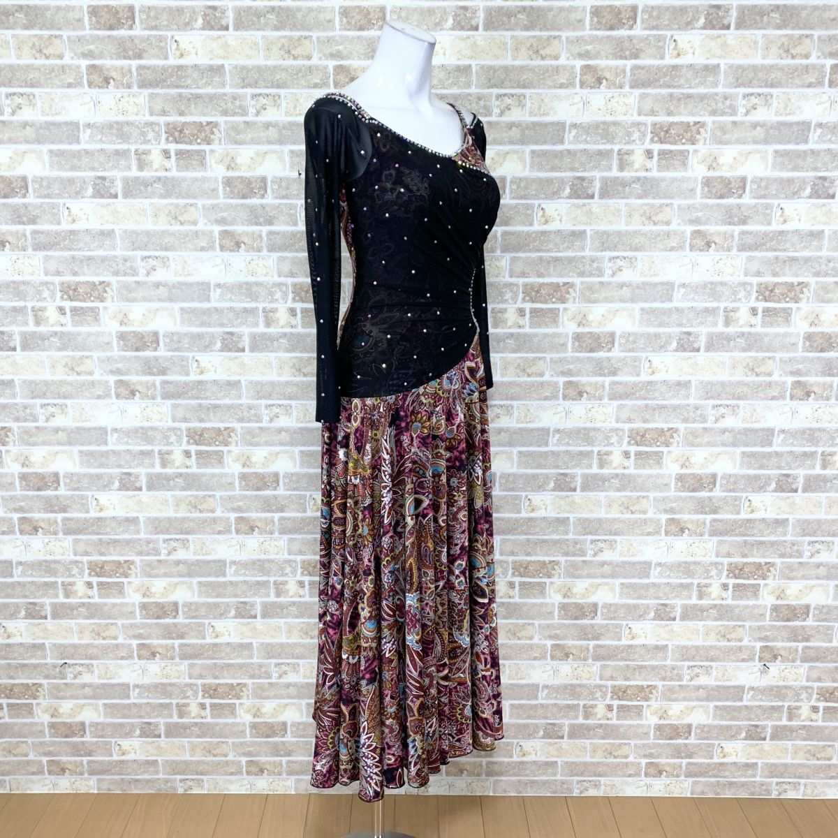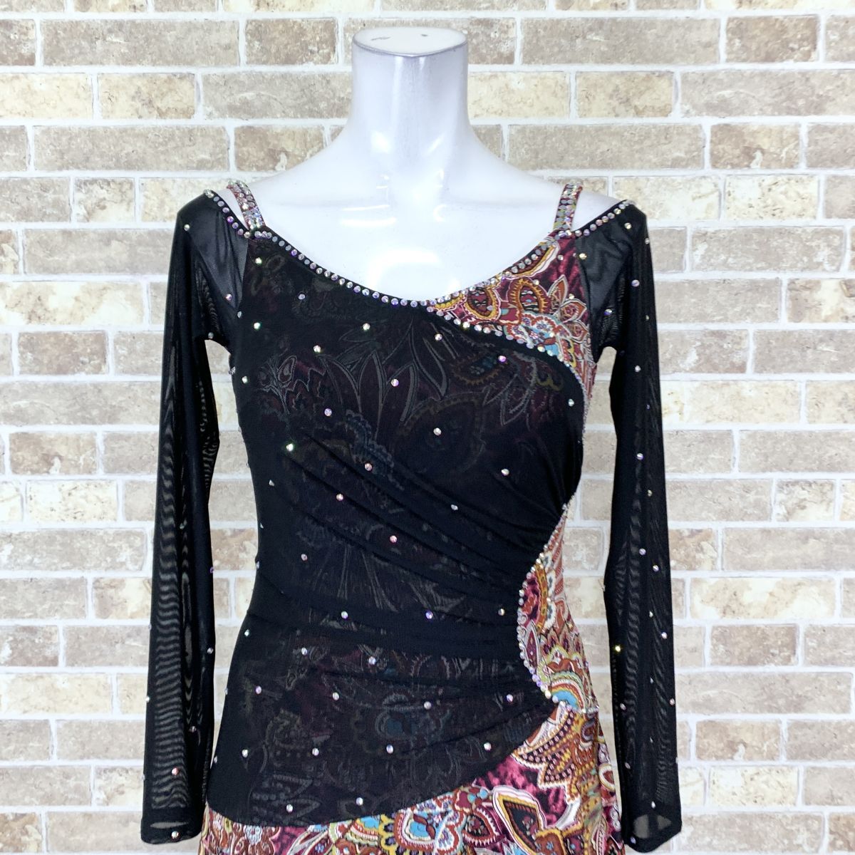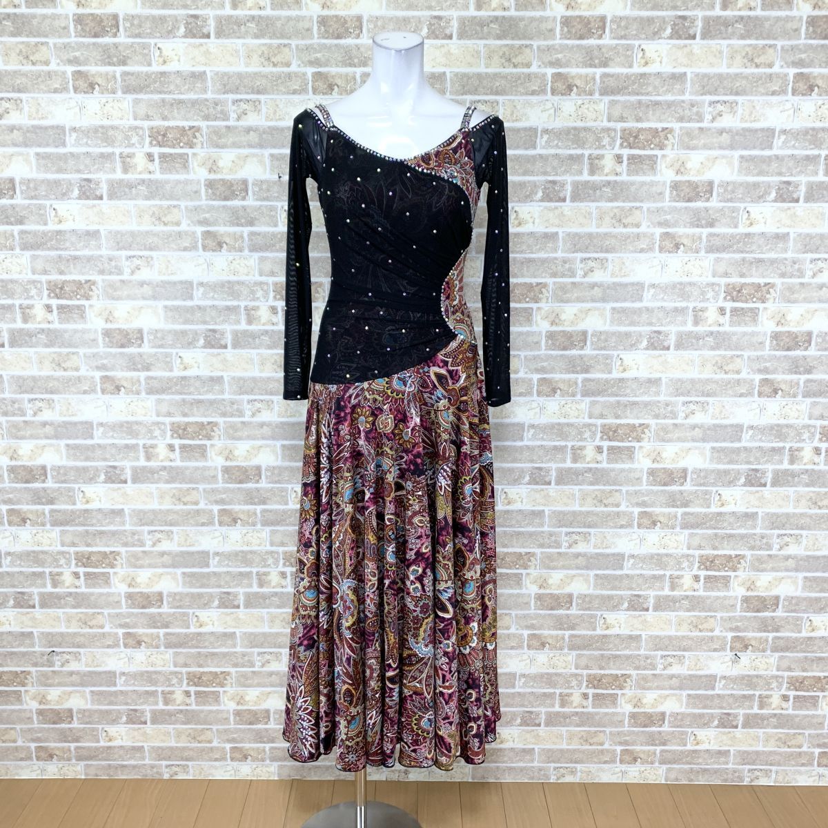 1円 社交ダンスドレス GRANT 多色柄 M インナーパンツ付 ダンス衣装ドレス カラードレス  舞台衣装  中古16149