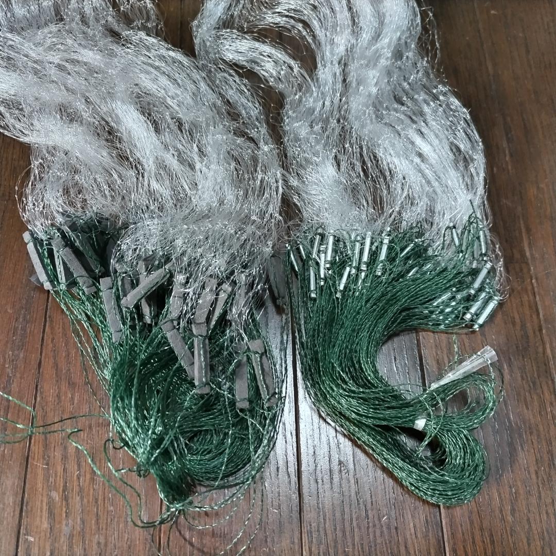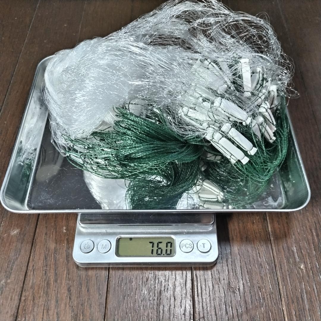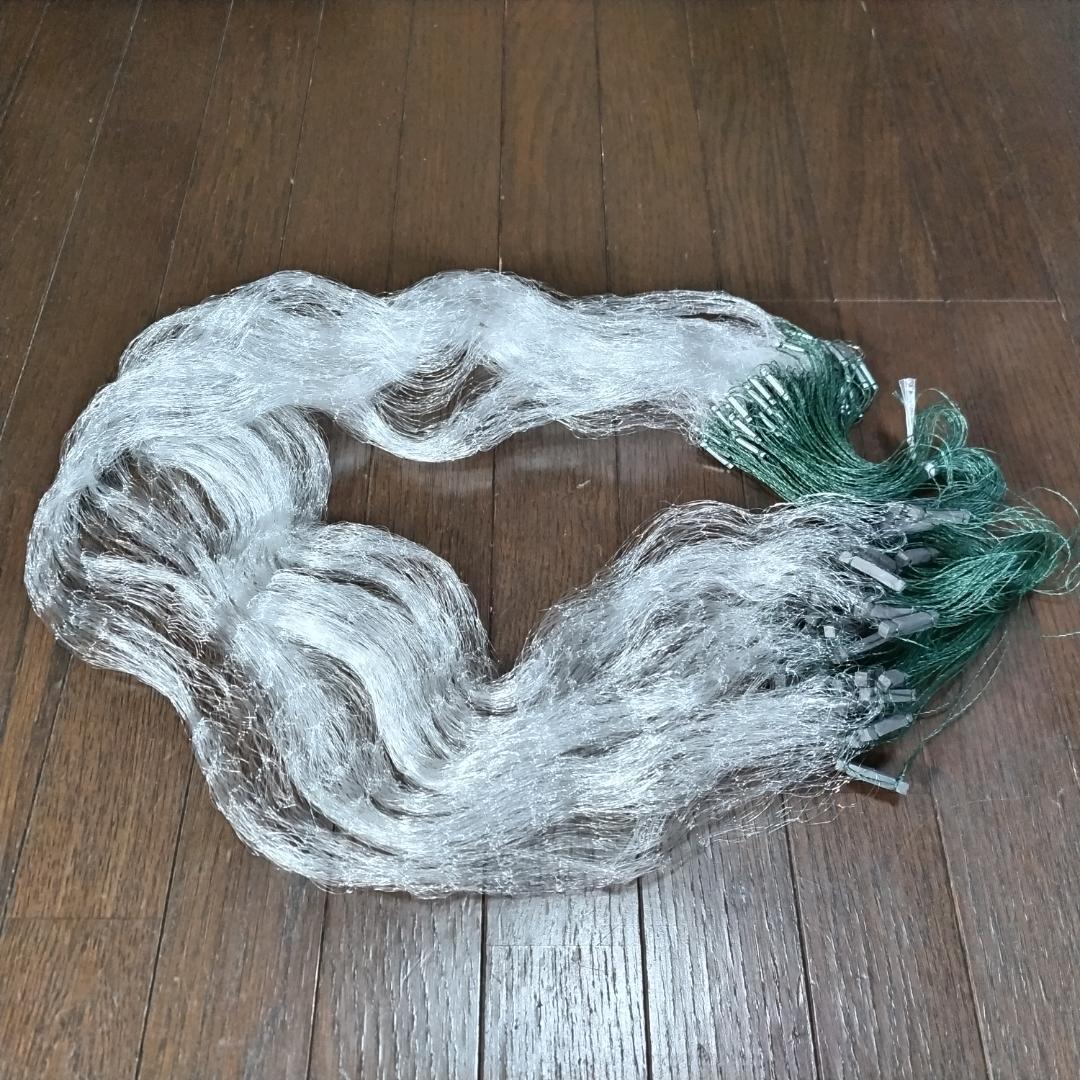 糸は細いです(0.5号位)。網は細糸ほど魚が絡みやすく、水流の影響を受けにくいです。耐久性より魚を獲ることに重点を置いた刺し網です。