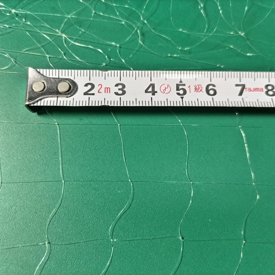 網の緩み維持の為、上下の緑色の撚り糸はPE素材で伸縮しませんので、使える長さは実質10~15m位です。