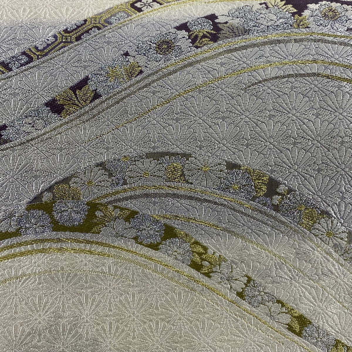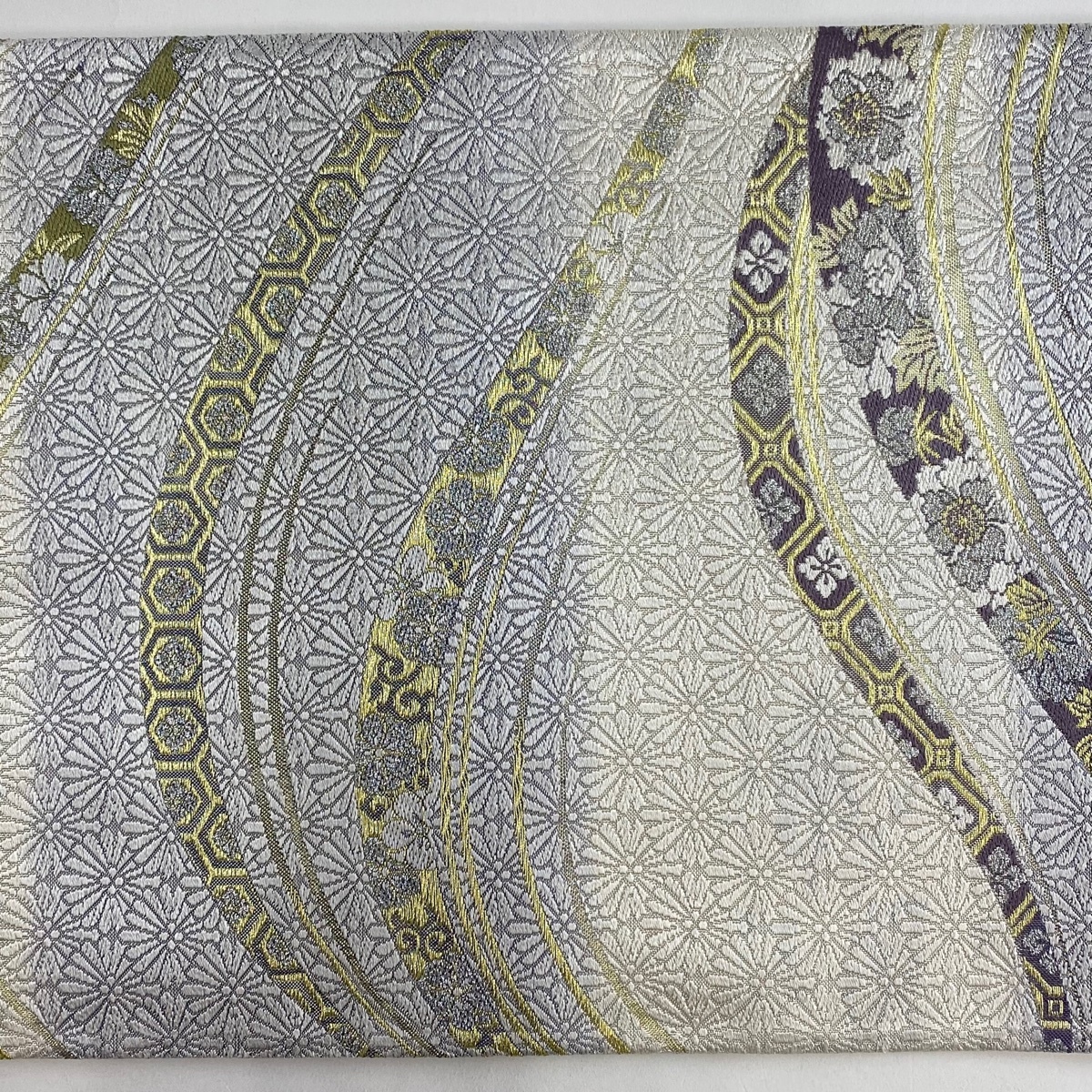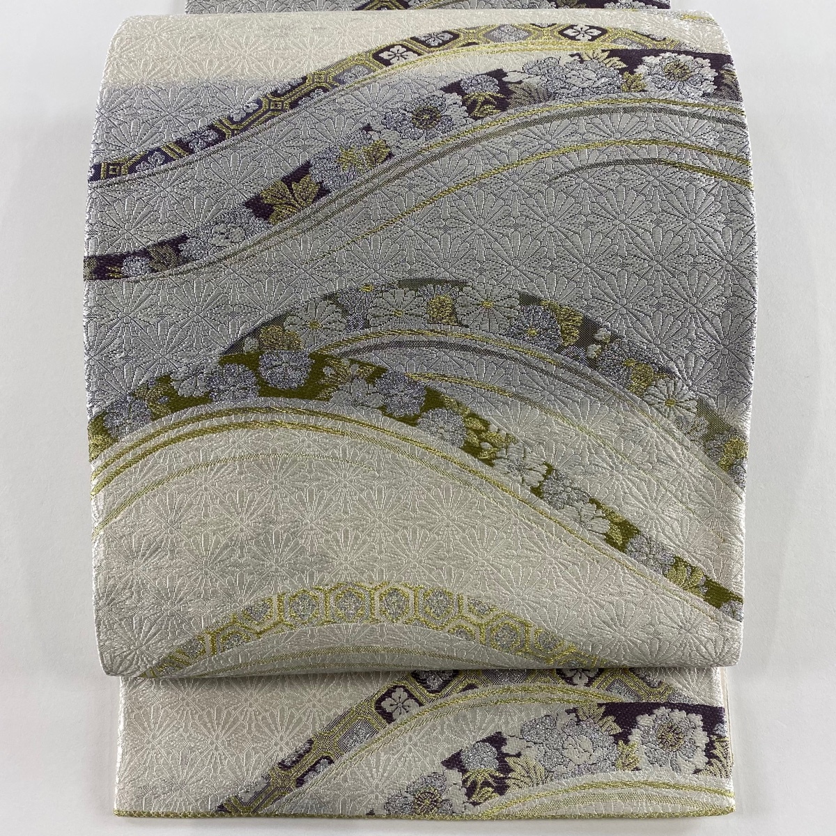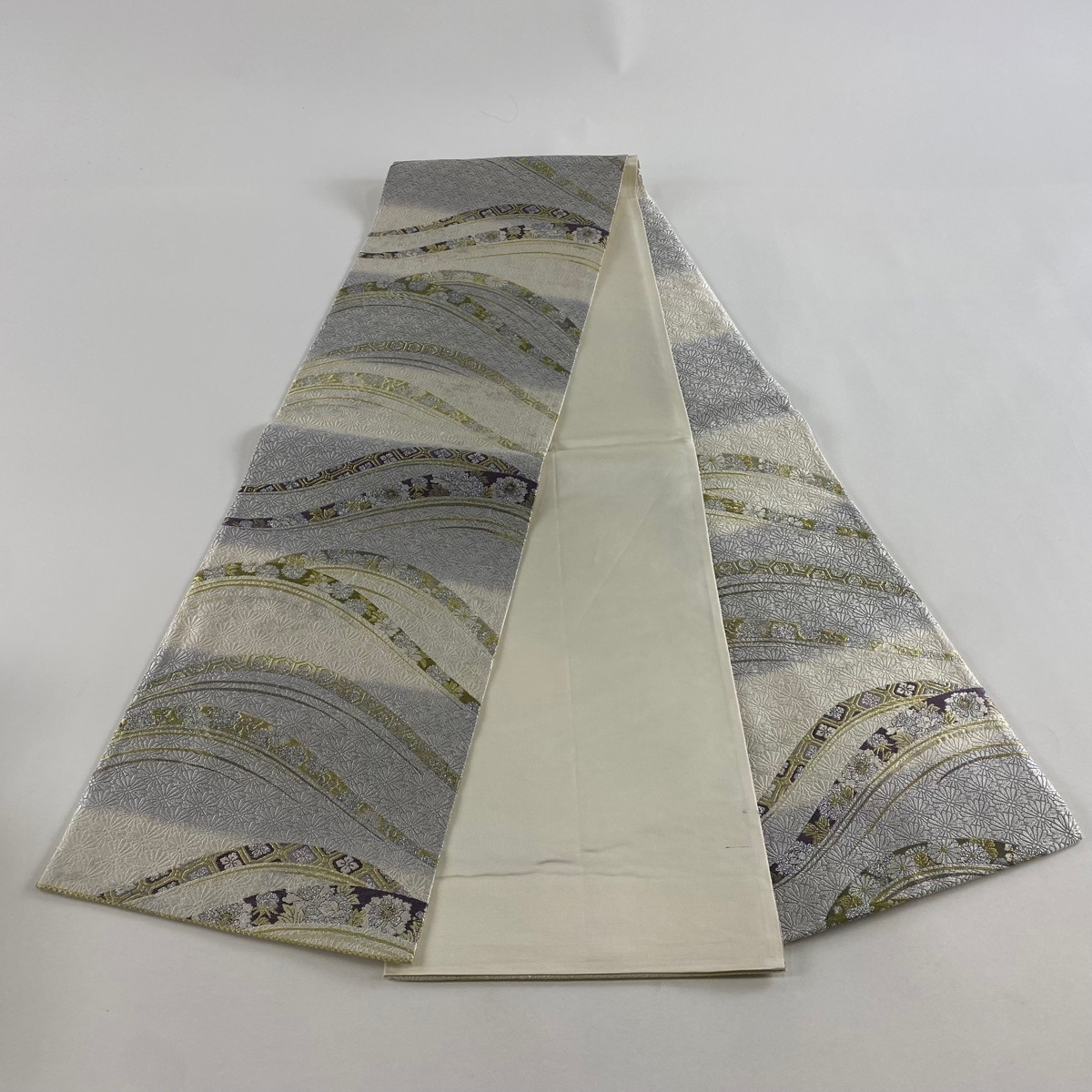 | 袋帯 美品 秀品 草花 亀甲 金糸 箔 クリーム 六通 正絹 【中古】 |