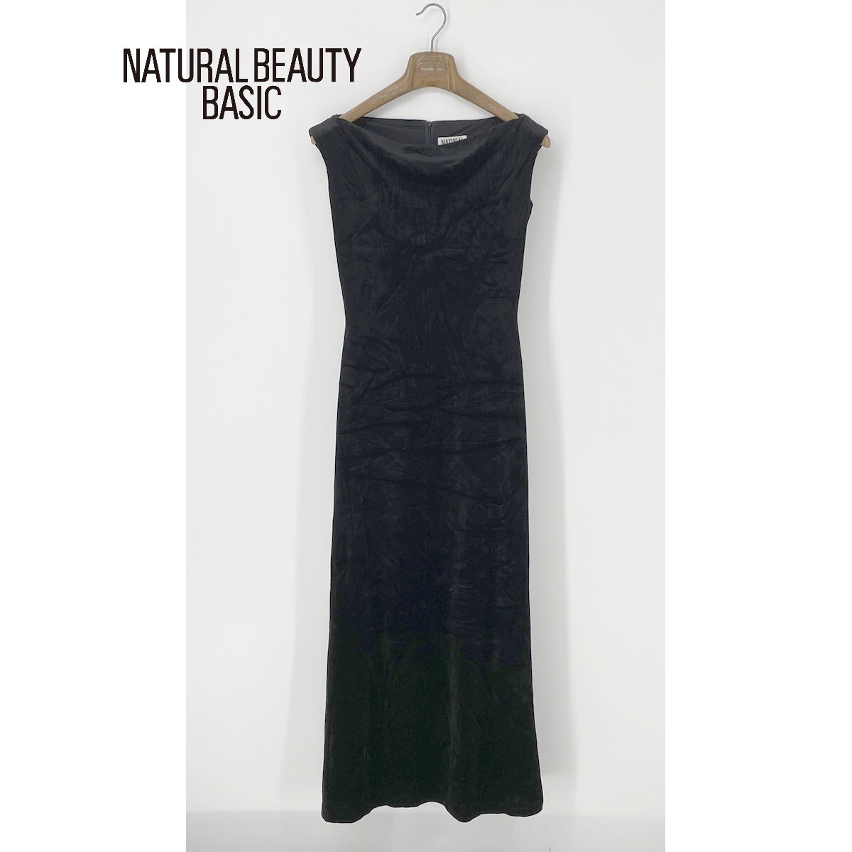 A7961/極美品 春夏 NATURAL BEAUTY ナチュラルビューティー ベロア ベルベット ノースリーブ ロング マキシ丈 ワンピース M 黒/レディース