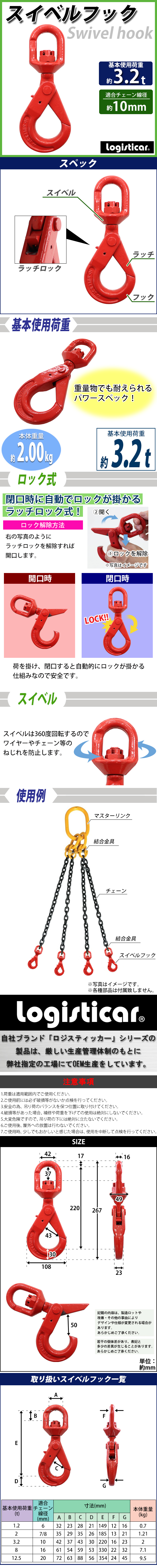 | 商品名 | 送料無料 スイベルフック 使用荷重約3.2t 約3200kg G80 鍛造 エコノミーモデル フック スイベル 回転 吊り具 ロッキングフック ロックフック セルフロッキングフック ラッチロックフック アイタイプ 重量フック 吊りフック チェーンスリング ワイヤー 赤 レッド shook32t |