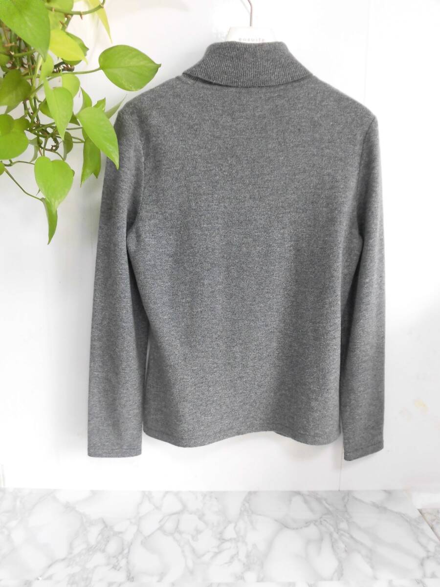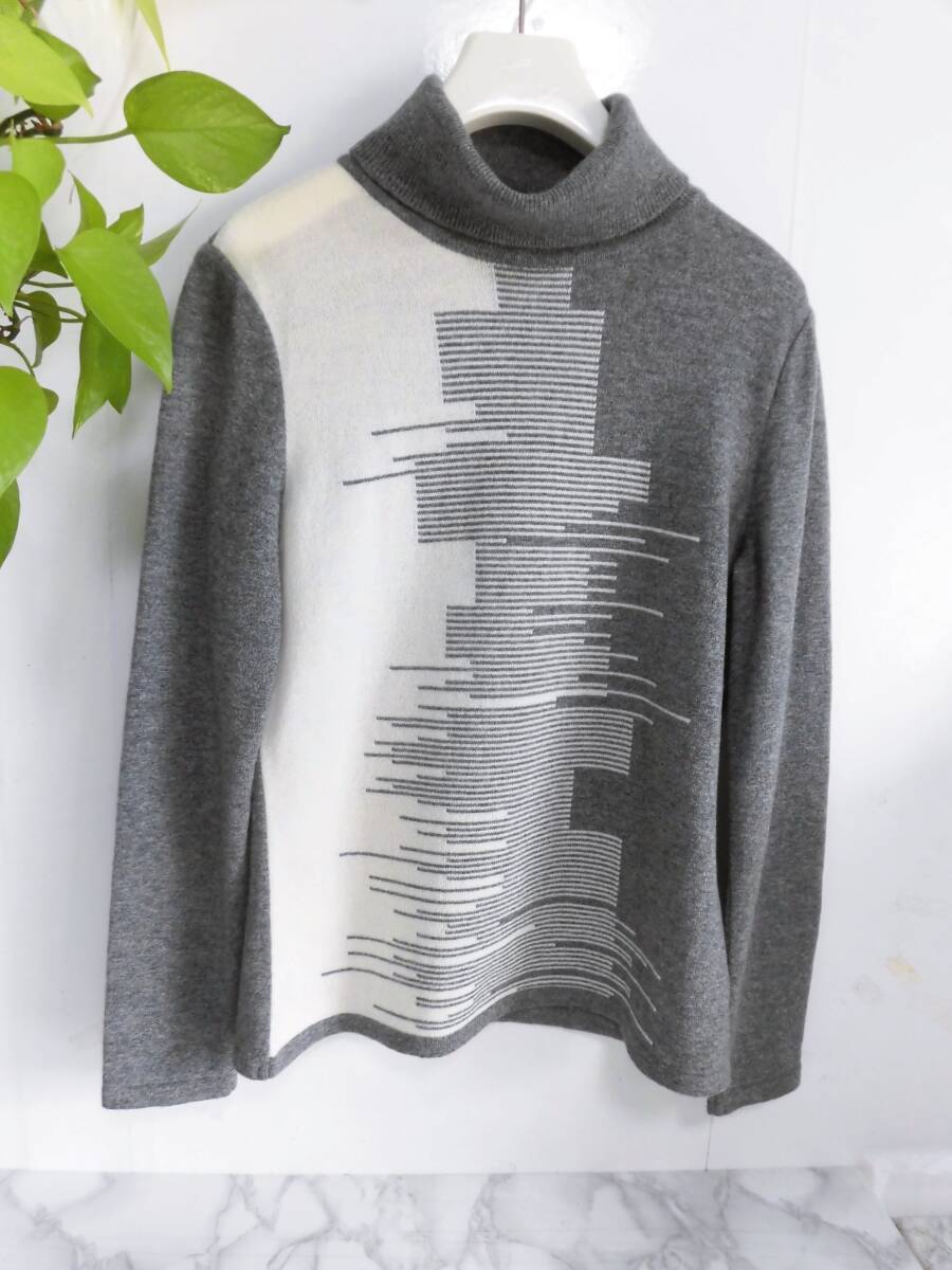 ☀ デザイナーブランド、ハナエ・モリの幾何学柄が’粋’なニット。 カラーはグレーをベースにしたグレー濃淡&白。 柔らかいカシミヤ混で体系にフィットする嵩張らない素材なので、この季節 カーディガンやジャケットとも着やすいニットです。 数回着用の美品ですが、ニット製品のリサイクル品をご理解下さる方に。 ===================================== 参考価格 37,000円位 |