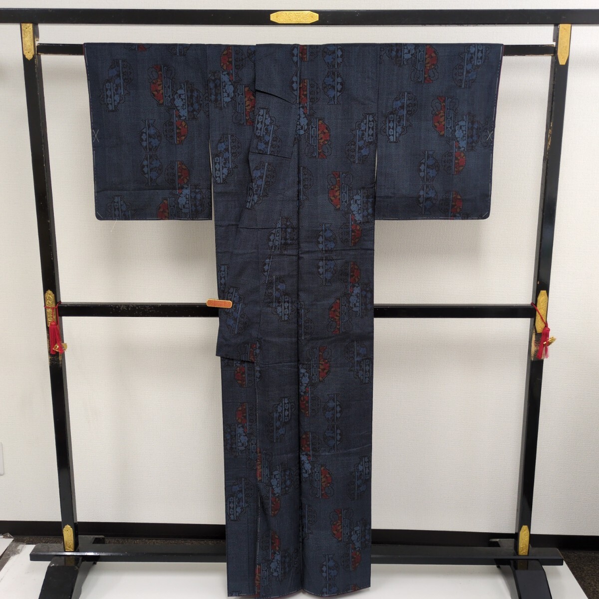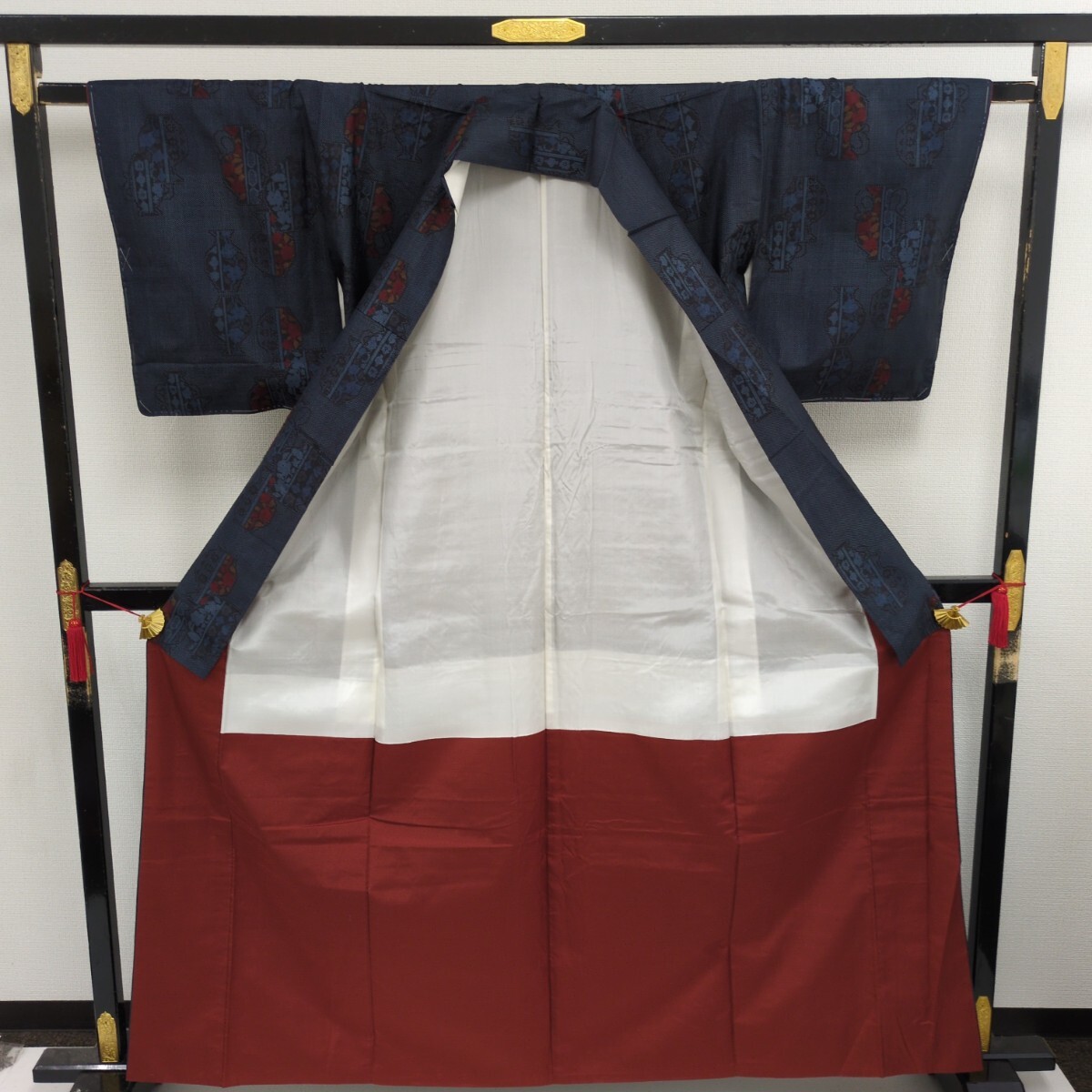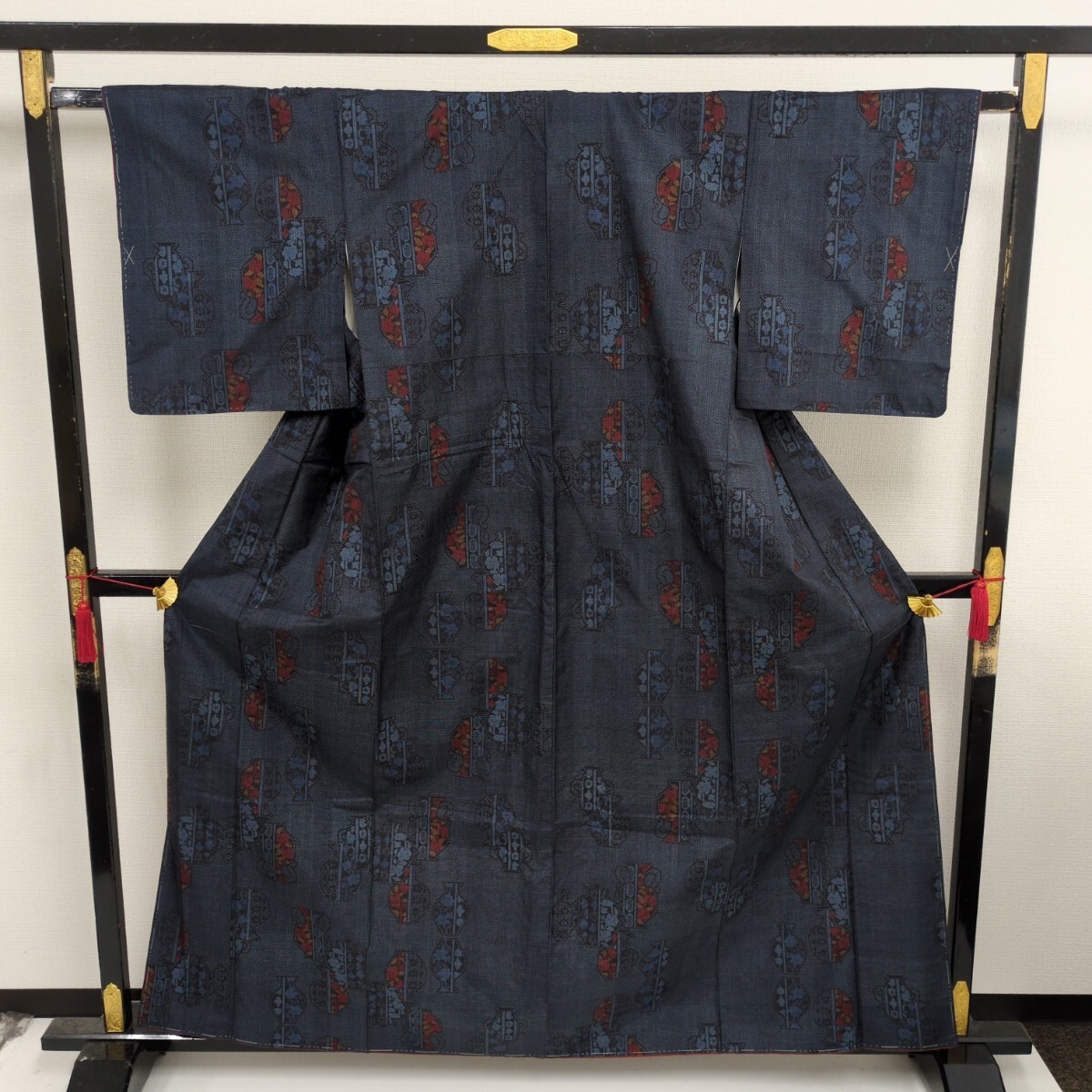 【楓】本場大島紬 正絹 一元式 泥藍染め 素敵な絣 袷 着物 KK-1546