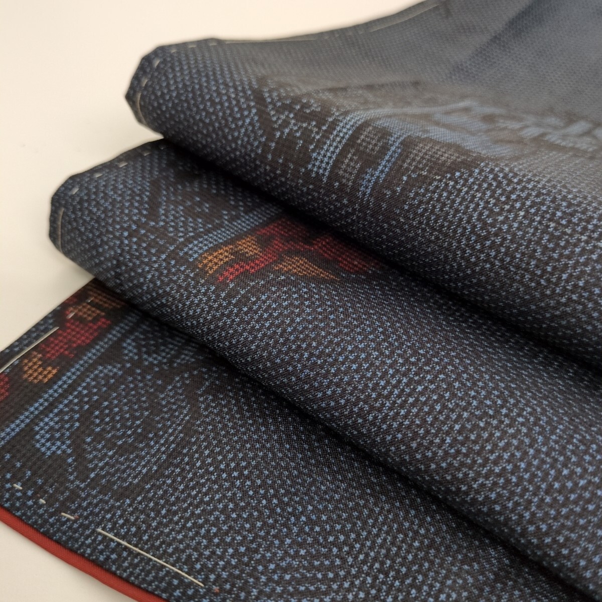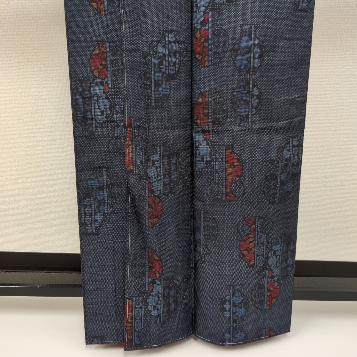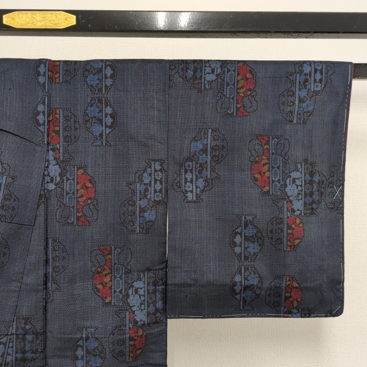 【楓】本場大島紬 正絹 一元式 泥藍染め 素敵な絣 袷 着物 KK-1546