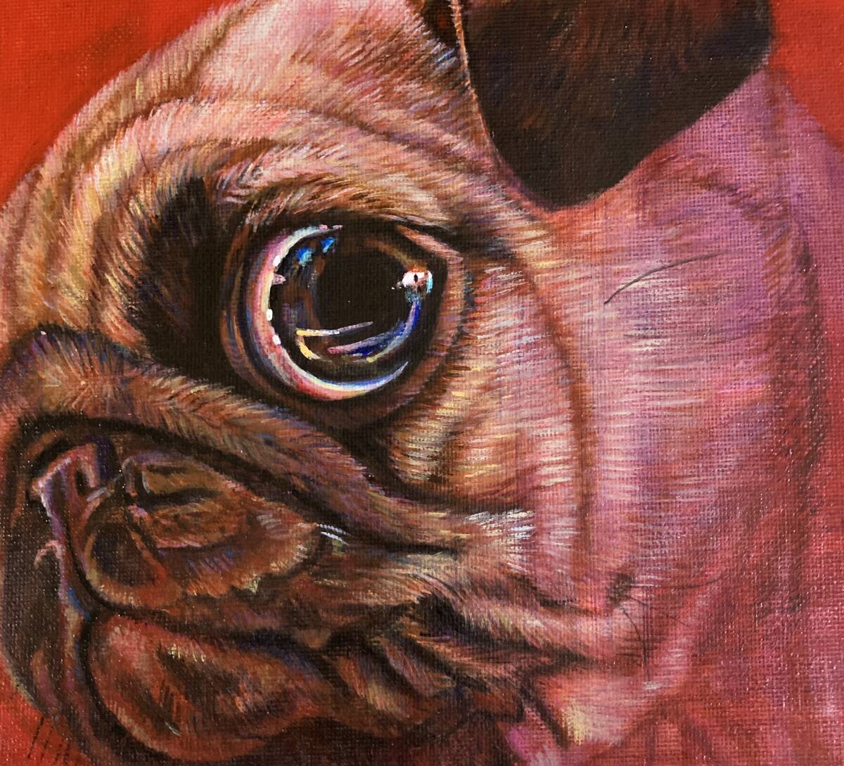キャンバスボードにアクリル絵の具で描きました。