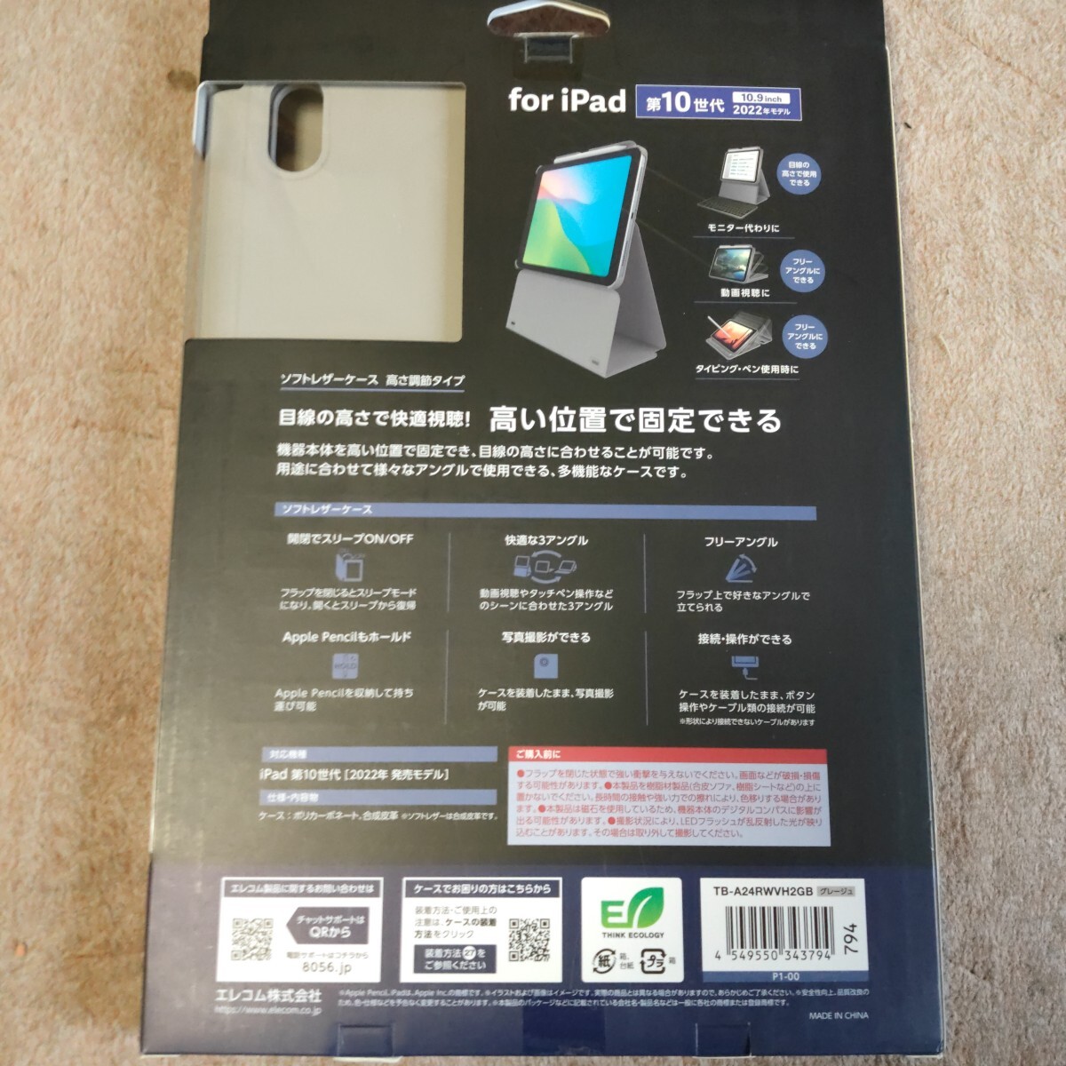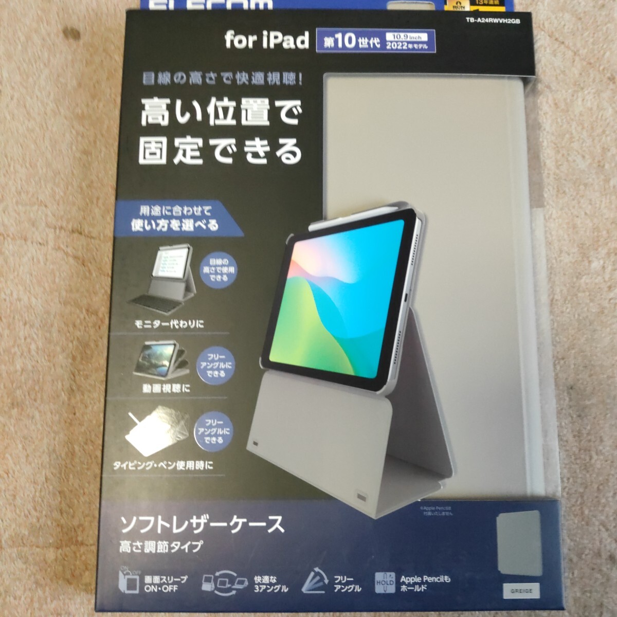 ●ELECOM iPad 第10世代 用 フラップケース ソフトレザー 高さ調整 スリープ対応 クレージュ TB-A24RWVH2GB