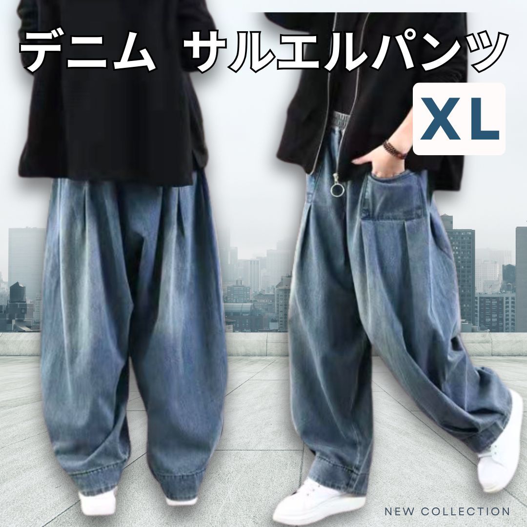 サルエル風 ワイドデニムパンツ(男女兼用)  XLサイズ