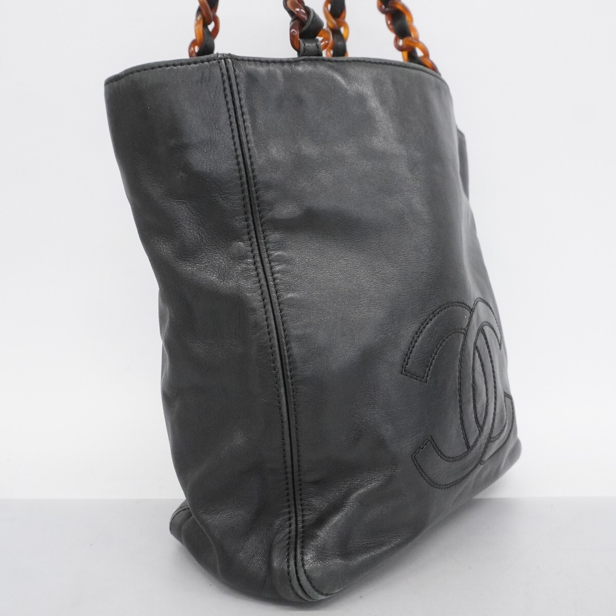 【5ob0947-h】シャネル トートバッグ ラムスキン ブラック【中古】レディース