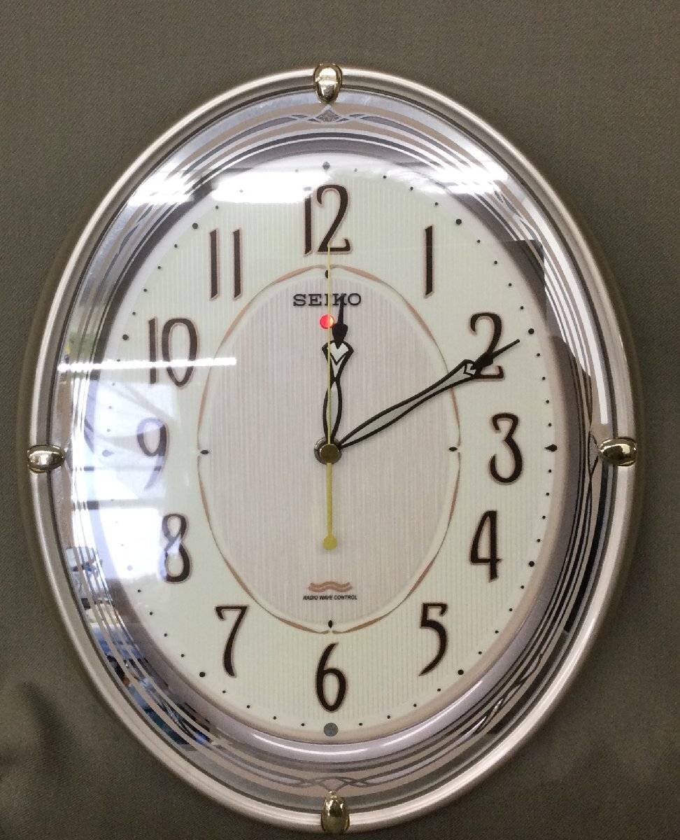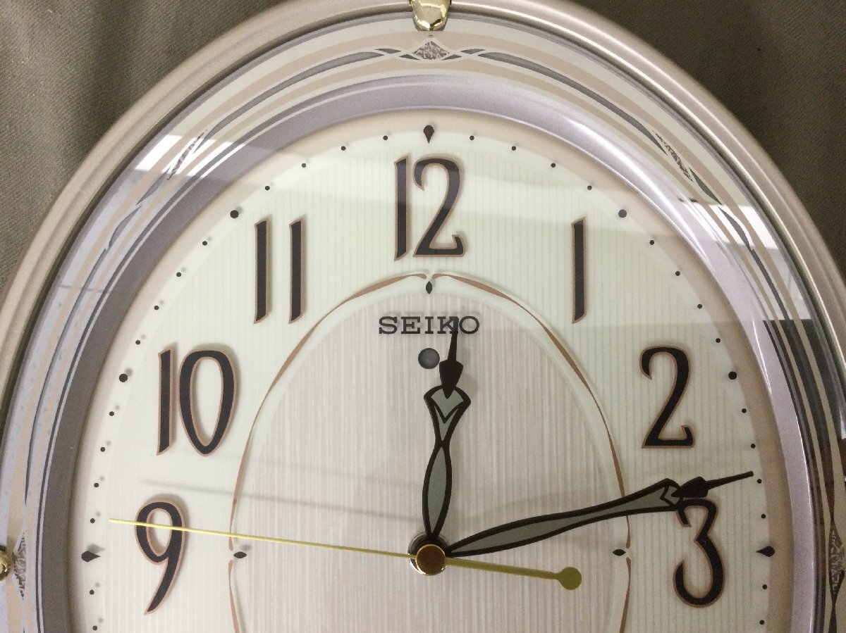 ●★27―003★壁掛け時計 セイコー タイムクリエーション 電波時計 KS289S 動作品/オーバル型 楕円形 白文字盤 レトロ アナログ[80]