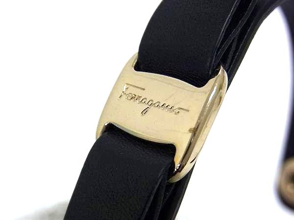 1円 ■美品■ Salvatore Ferragamo フェラガモ ヴァラリボン レザー ブレスレット バングル アクセサリー ダークネイビー系 FS6130