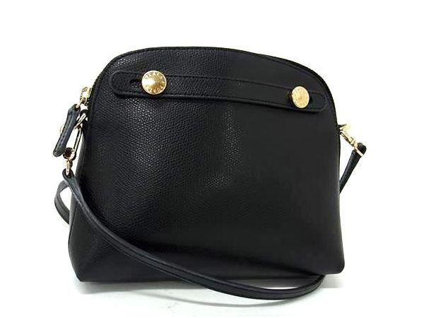 1円 ■美品■ FURLA フルラ パイパーミニ レザー クロスボディ ショルダーバッグ 斜め掛け ブラック系 BM9980