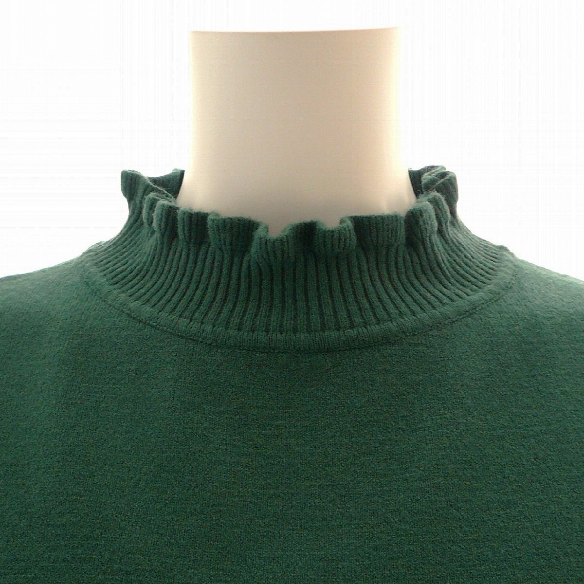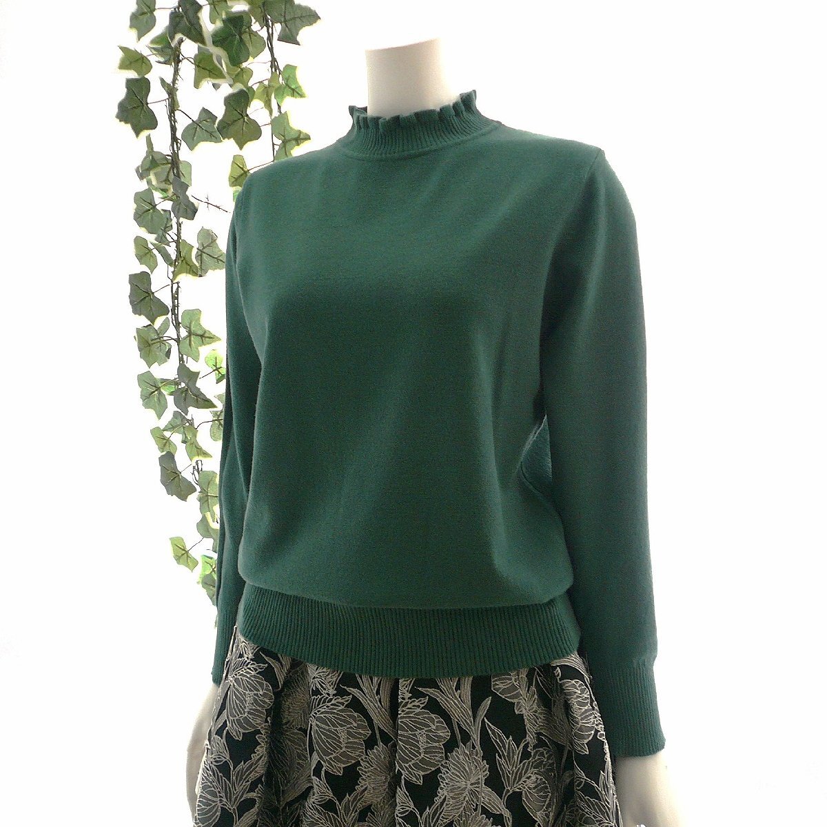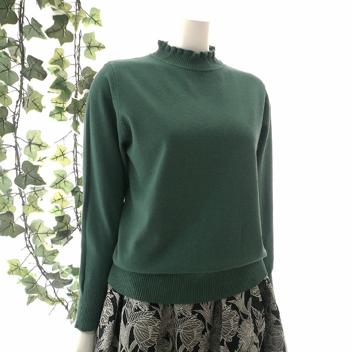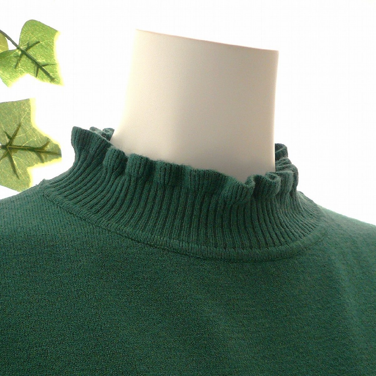 新品 9473 ML フリル ハイネック ニット セーター 秋 冬 レディース くすみグリーン メロウフリル もっちもち ストレッチ 50代 60代 70代