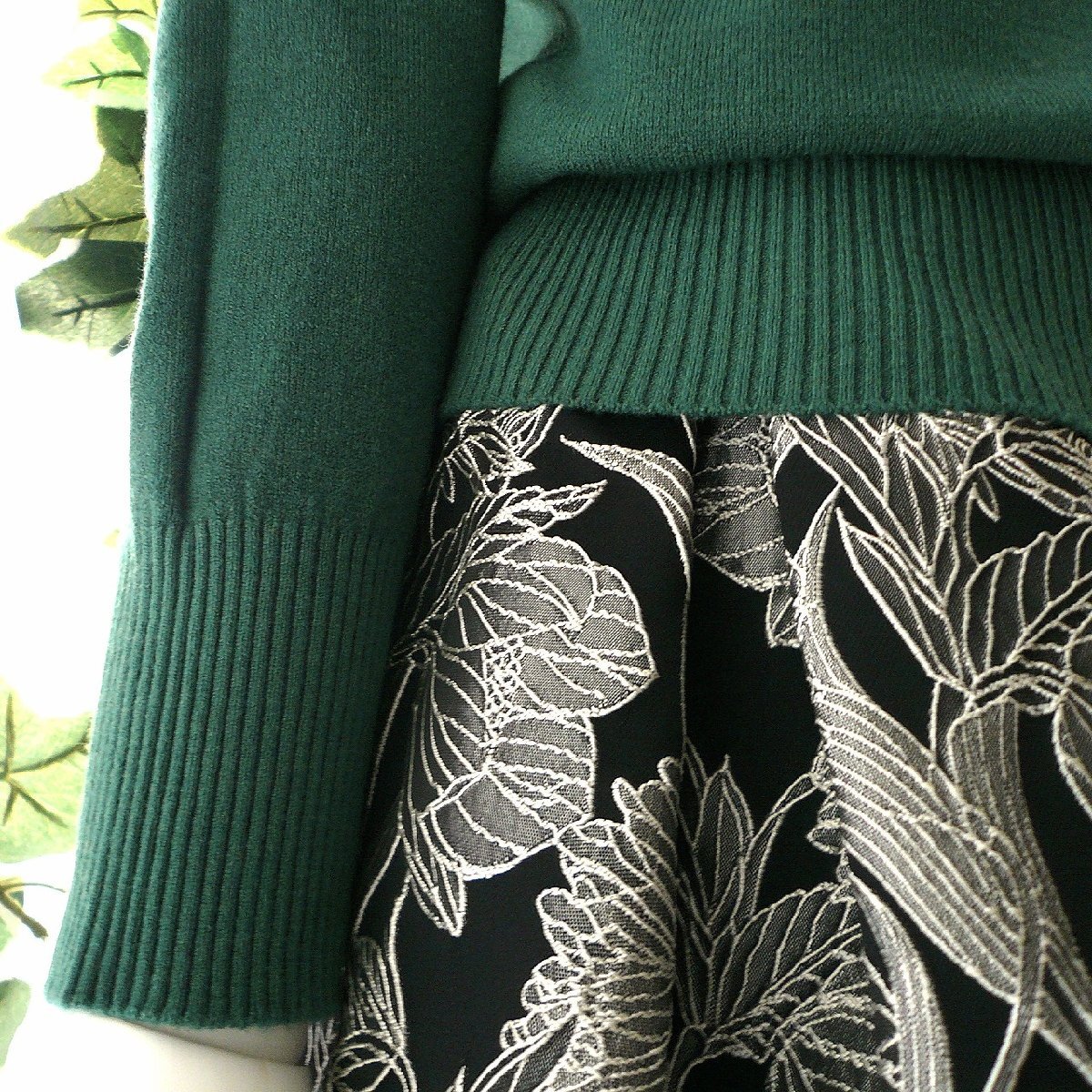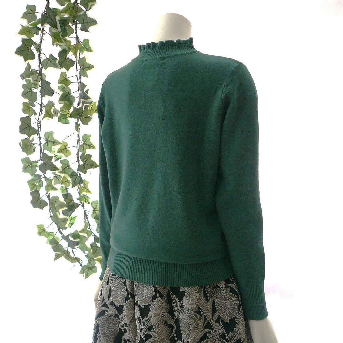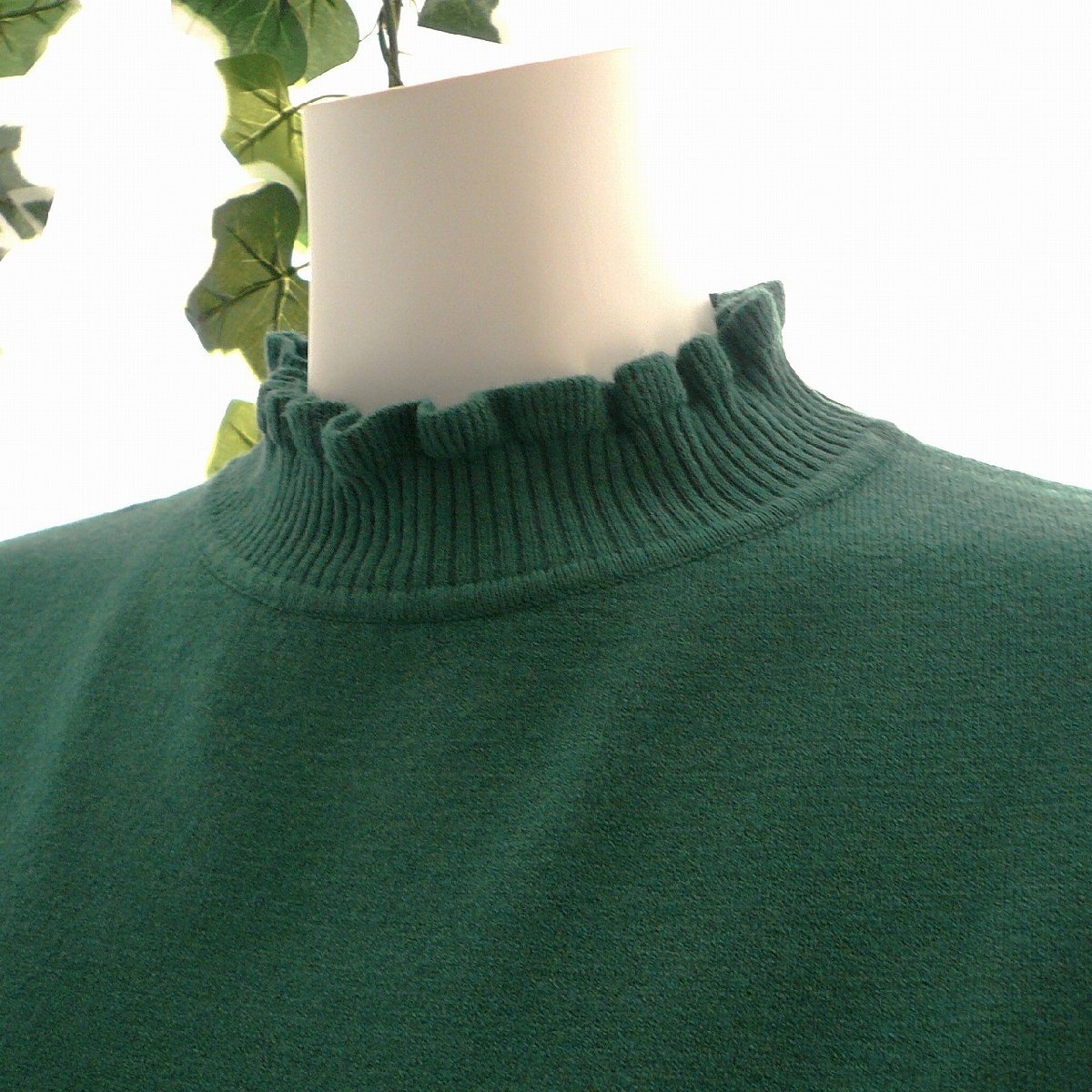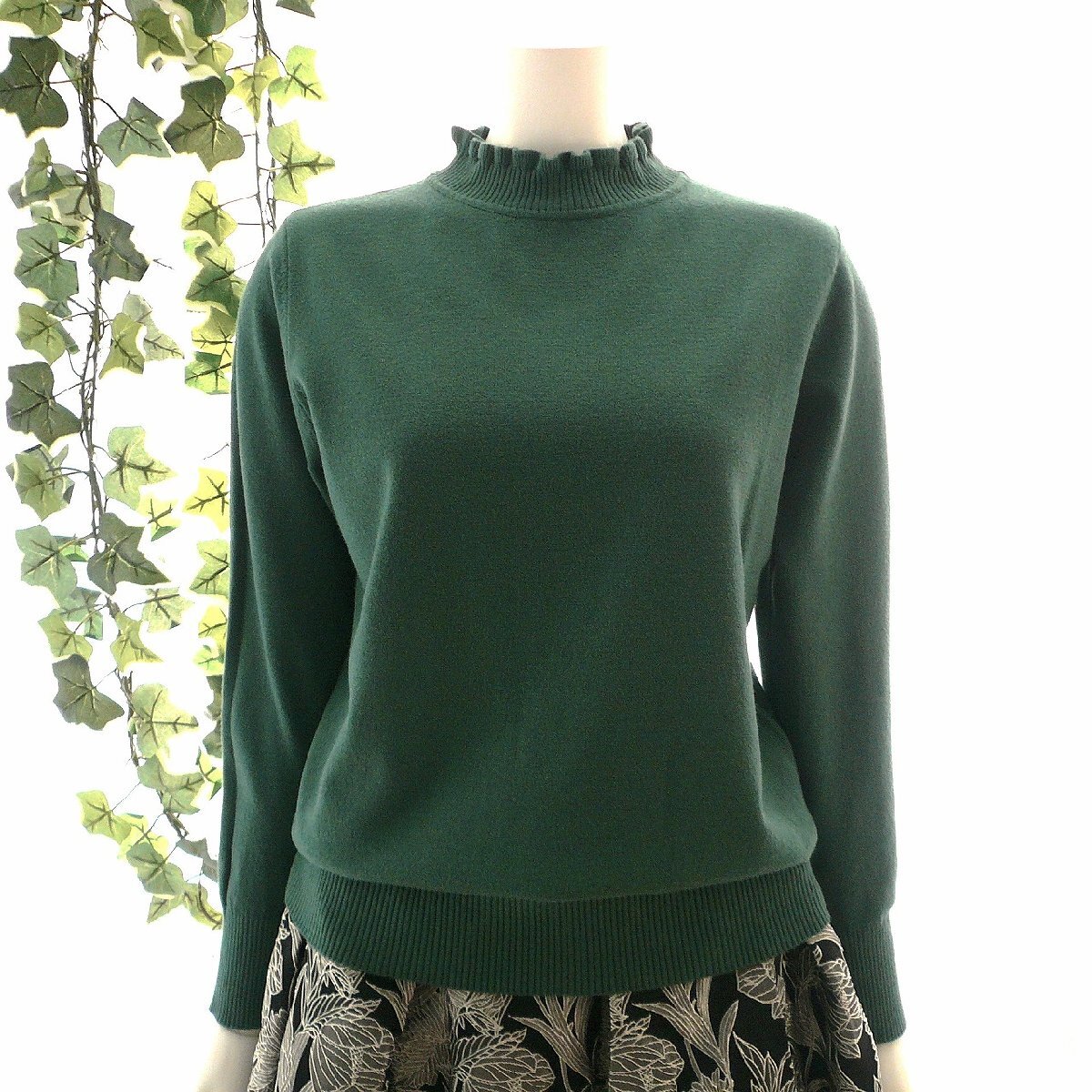 新品 9473 ML フリル ハイネック ニット セーター 秋 冬 レディース くすみグリーン メロウフリル もっちもち ストレッチ 50代 60代 70代