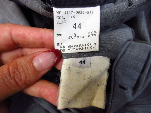 表記サイズ【上下44】 実寸サイズ ・ 肩幅:40cm ・ 着丈:69cm ・ 身幅:46cm ・ 袖丈:61cm ・ ウエスト:78cm ・ 総丈:94cm ・ 股下:72cm 袖丈は肩先から袖先までになります。 採寸はハンガーにかけてメジャーでの採寸となります。 ※素人採寸ですので、多少の誤差はご容赦ください。 |