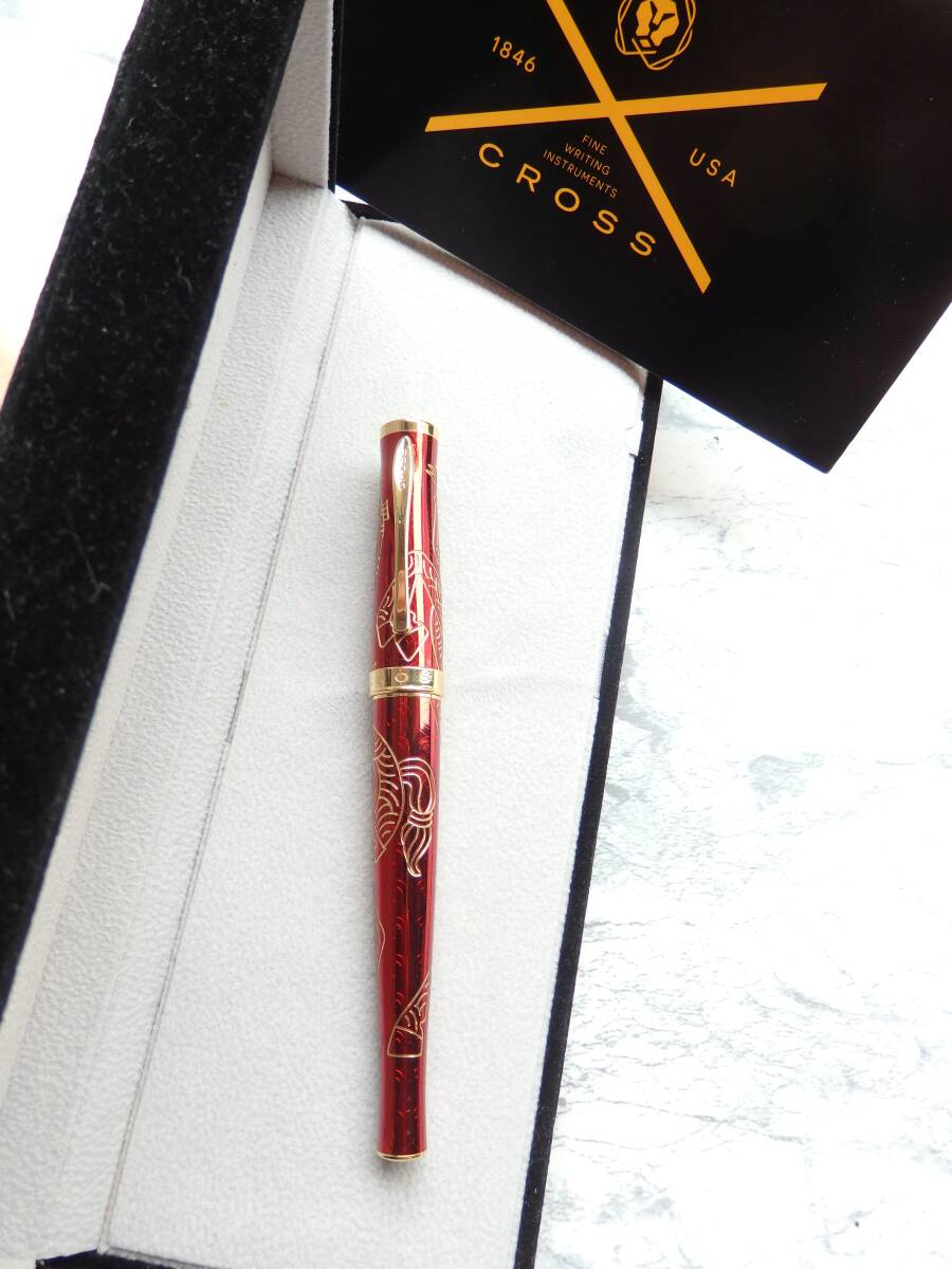 ◆【きれいな良品】【送料「230円】CROSS クロス イヤー・オブ・ザホース万年筆 ペン先:18金750ソリッドゴールド F程度