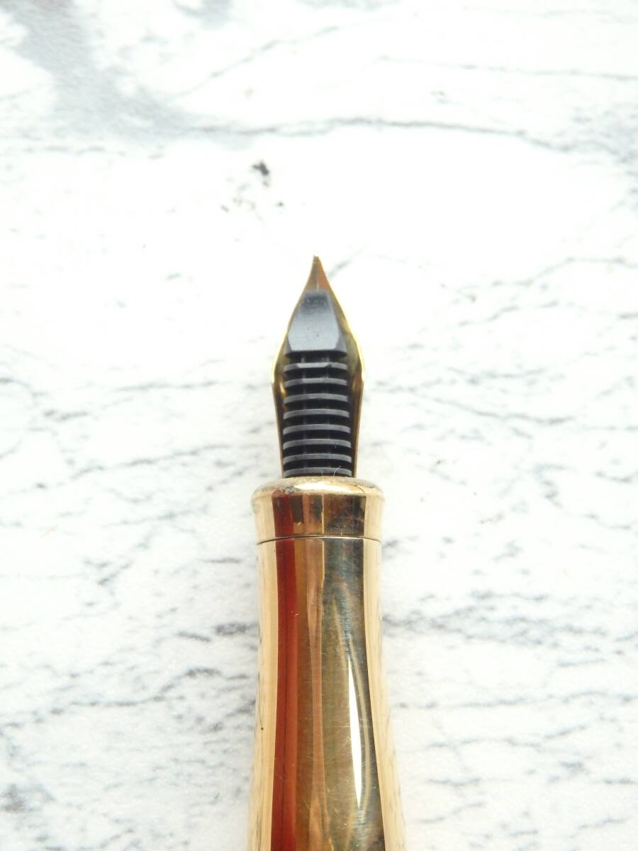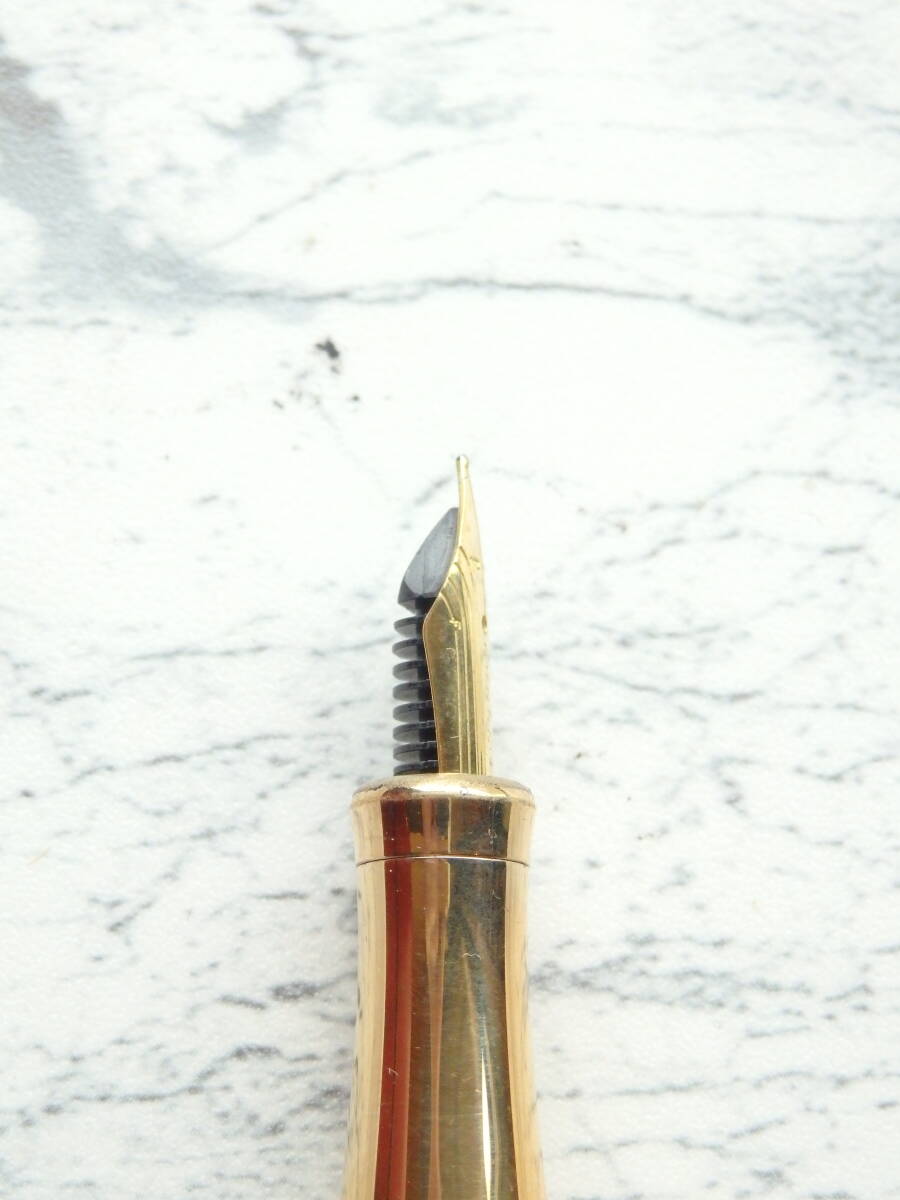 ペン先は、18金750ソリッドゴールドのF程度です。
