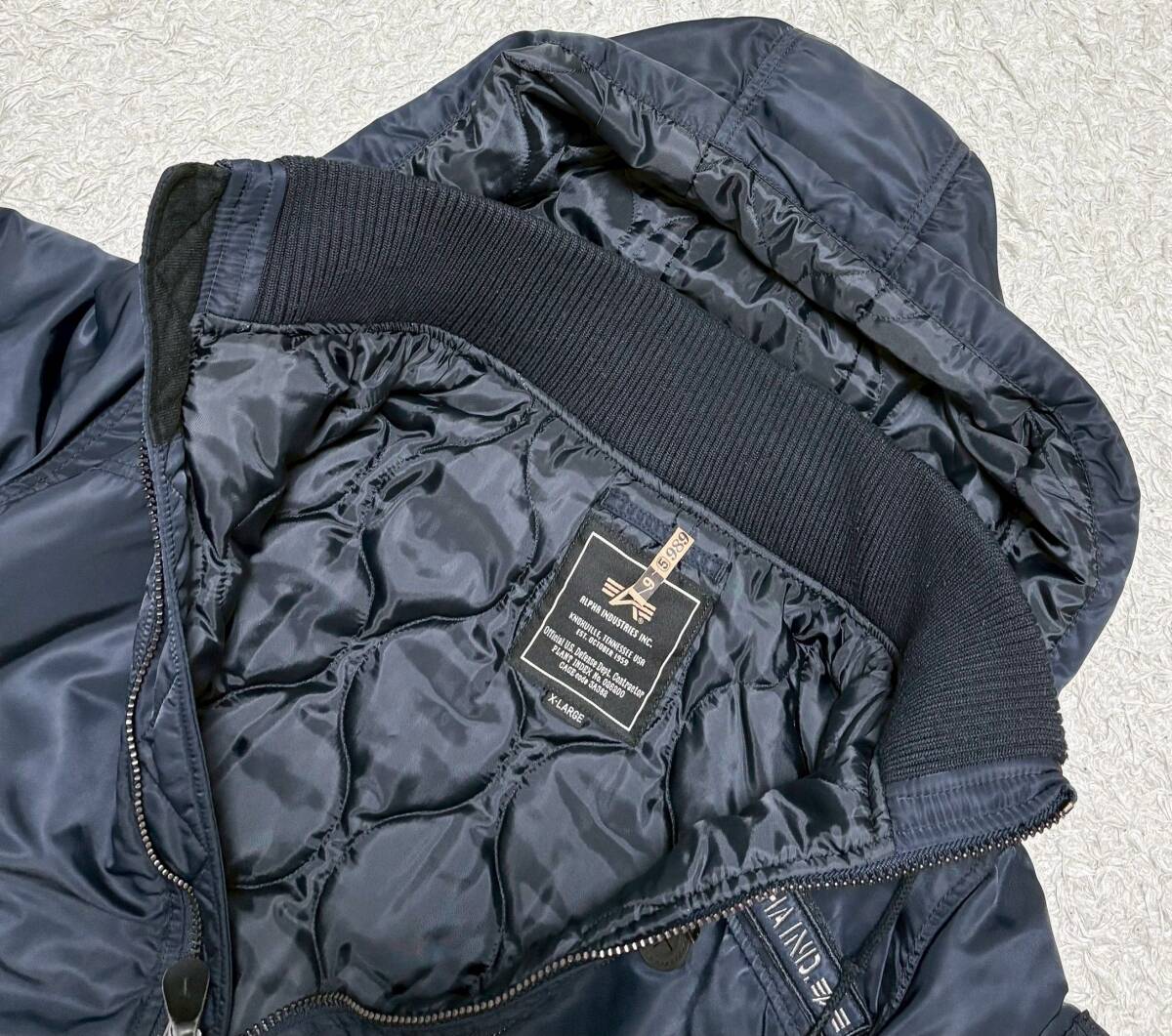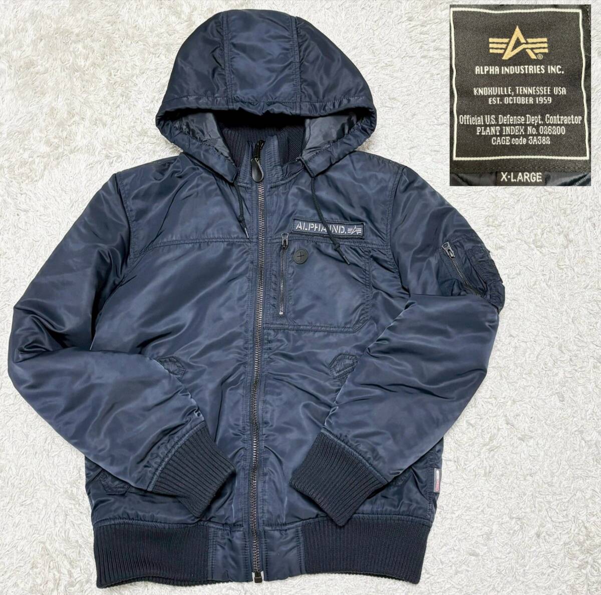 【大きいサイズXL★中綿サーモライト】ALPHA フーデッド フライトジャケット●ネイビー☆アルファ (10ハ)