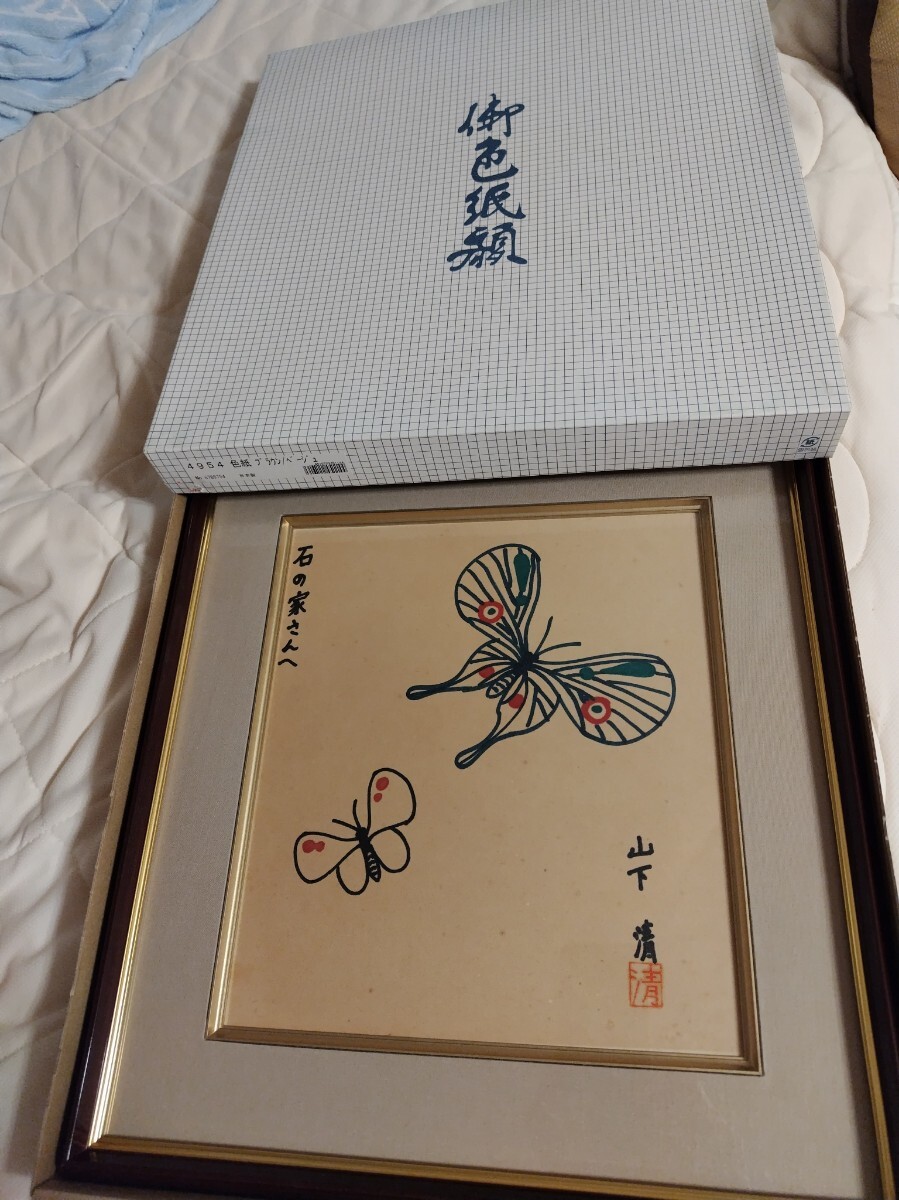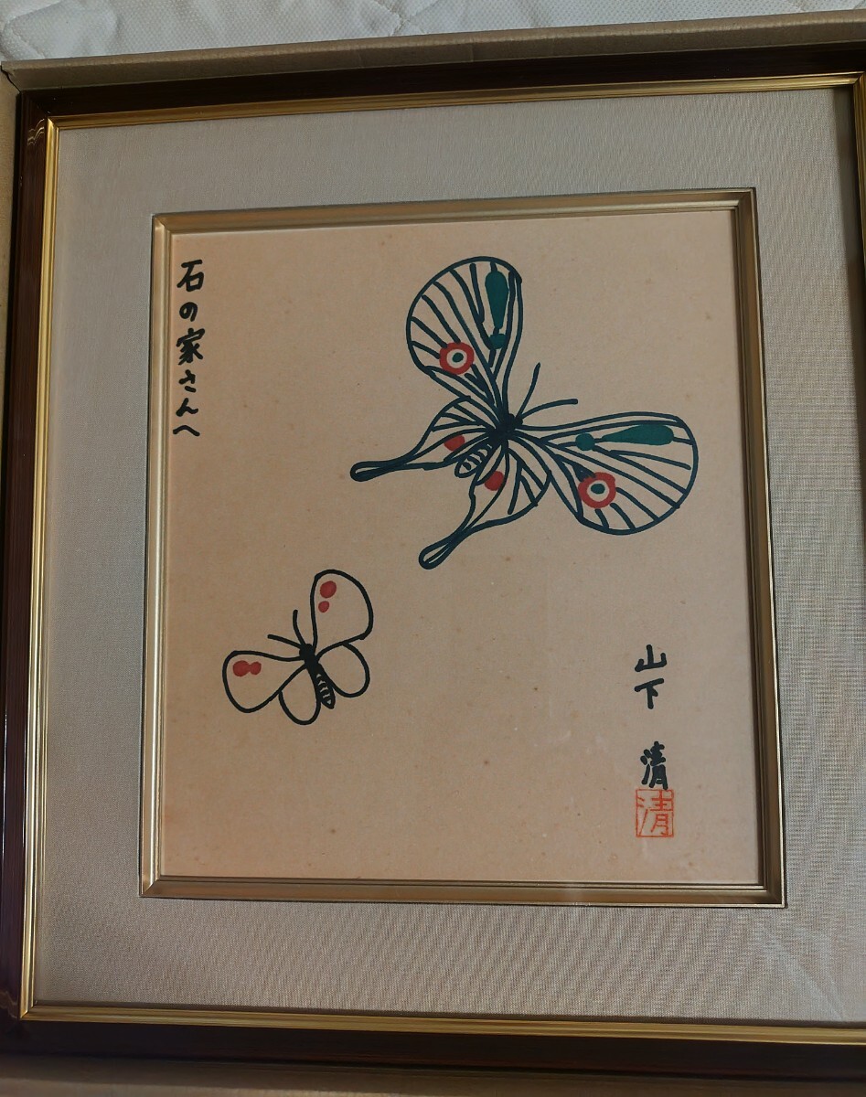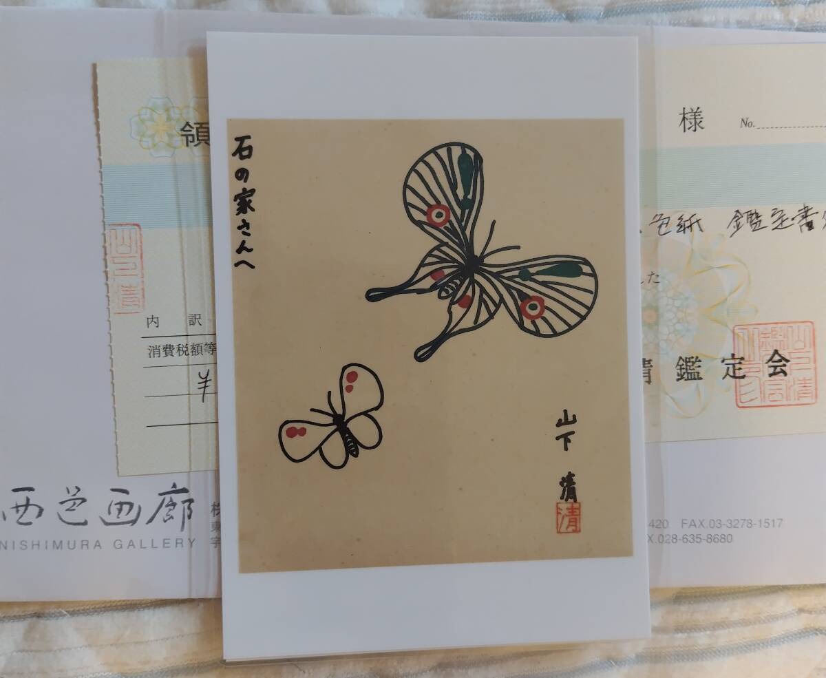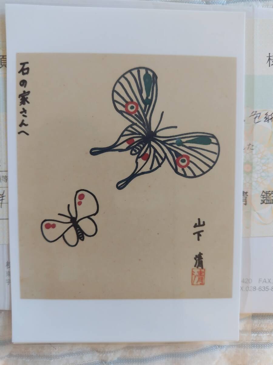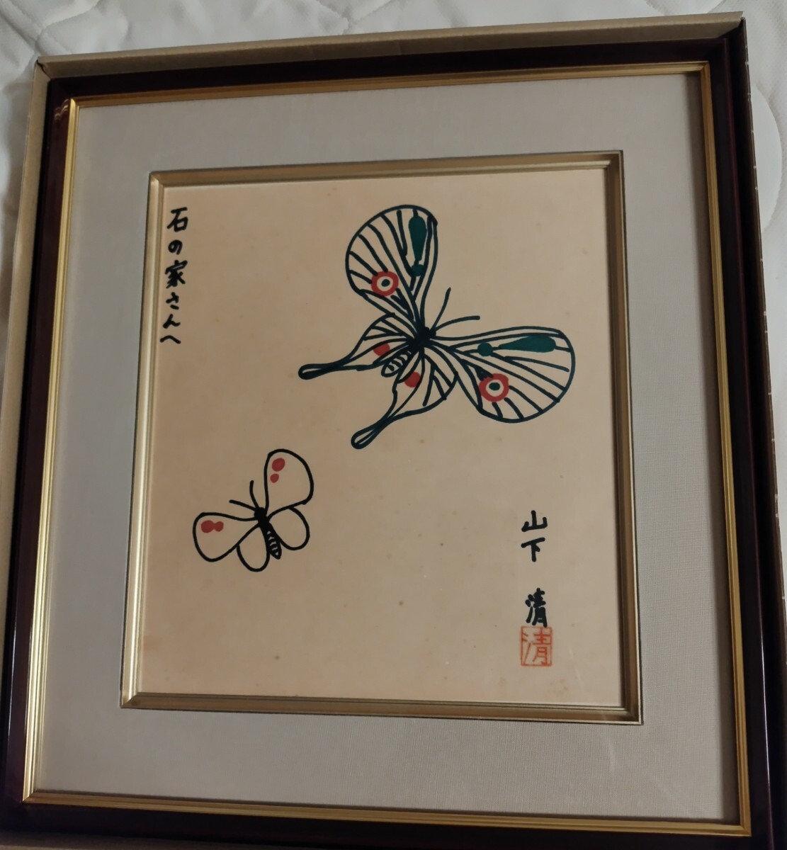 山下清 鑑定書付き肉筆 色ペン画 蝶 しかも石の家 色紙 真作を保障しますもし贋作と証明されれば落札代金は返金します。保証期間は60日となります。