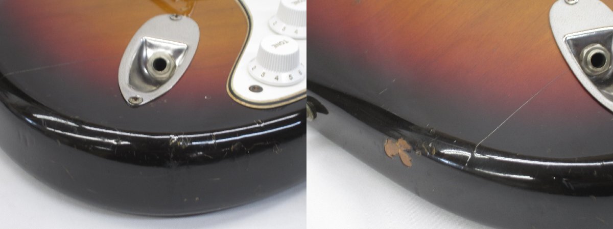 | 【詳細】 Fender Japan ST62-65 3TS 1983年製 【状態】 フレット 残り:7分山 ネック状態:やや順反り トラスロッド残り;余裕あり ナット幅:約42mm 弦高 1弦側:1.5mm / 6弦側:2mm 重量:3.5kg / 製造年:1983年 パーツ交換歴:パーツ類フルオリジナル、PGビス穴修正、フレット浮き修正、すり合わせ 傷、スレ、打痕キズ有り 割れ有り はがれ有り 全体的に傷、イタミが見受けられる状態となっております | |||||||