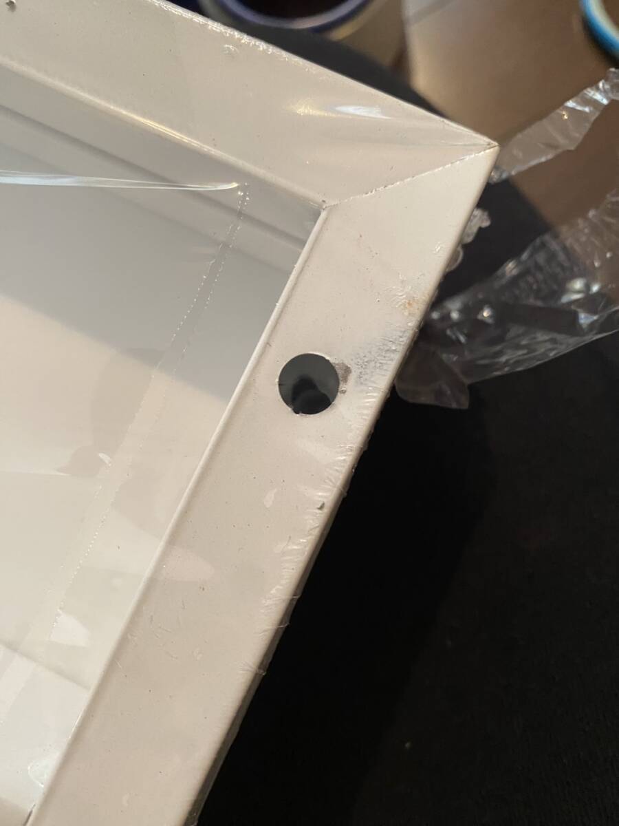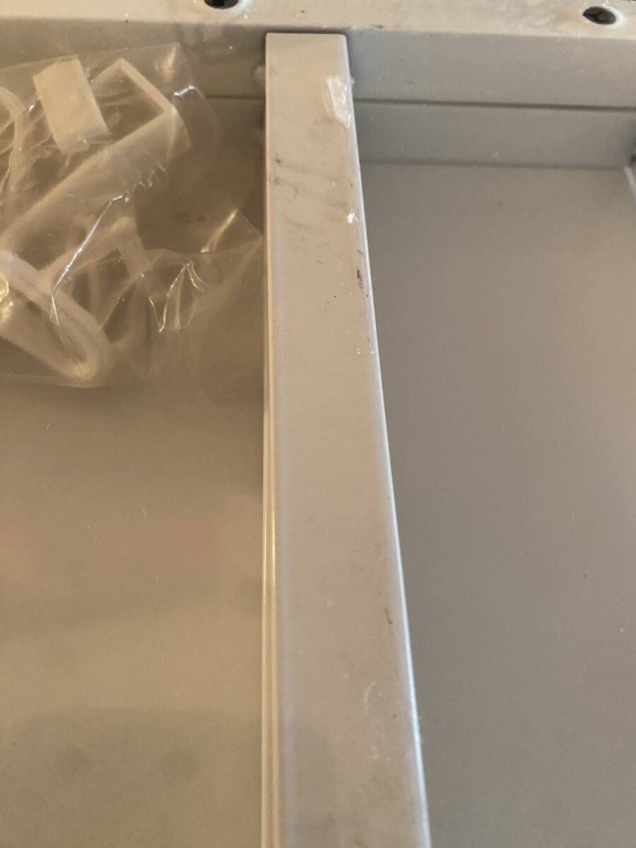 ・塗装の剥がれは背面の伸縮パーツになります。物を置けば見にくい位置にあるため、気にならなければかなりお手軽にレンジ台をご購入いただけます。