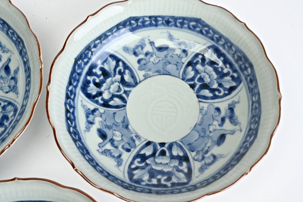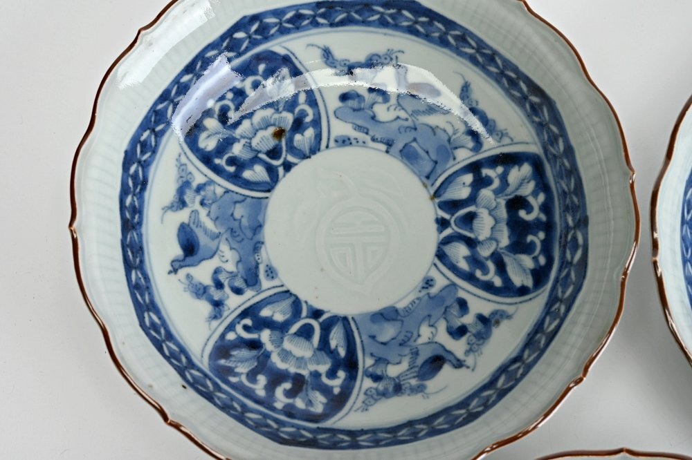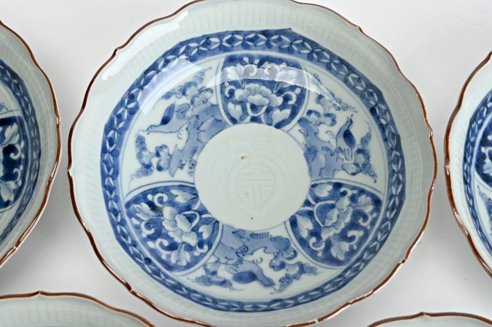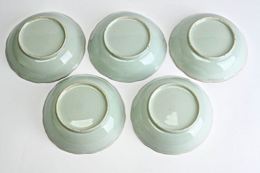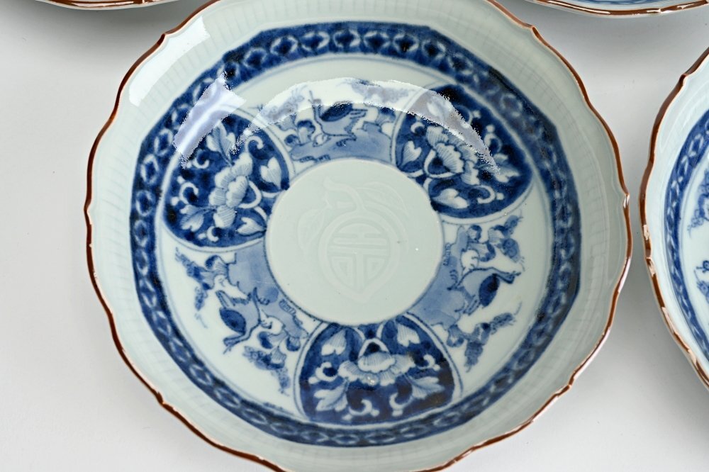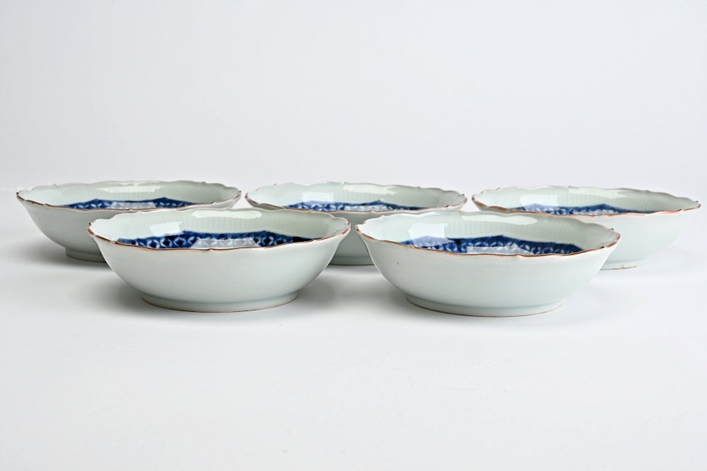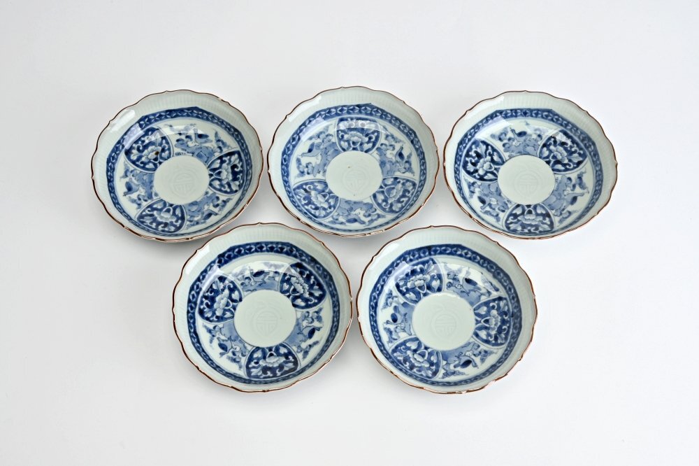II2305■古伊万里 染付膾皿 なます皿 輪花鉢 5客◆h
