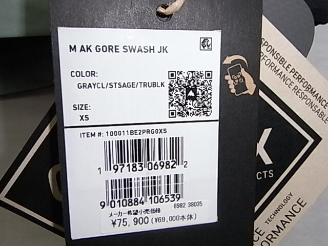 26 メンズバートン エーケー  スウォッシュ ゴアテックス 2L ジャケット / グレークラウド/ソフトサージ/トゥルーブラック / XSサイズ