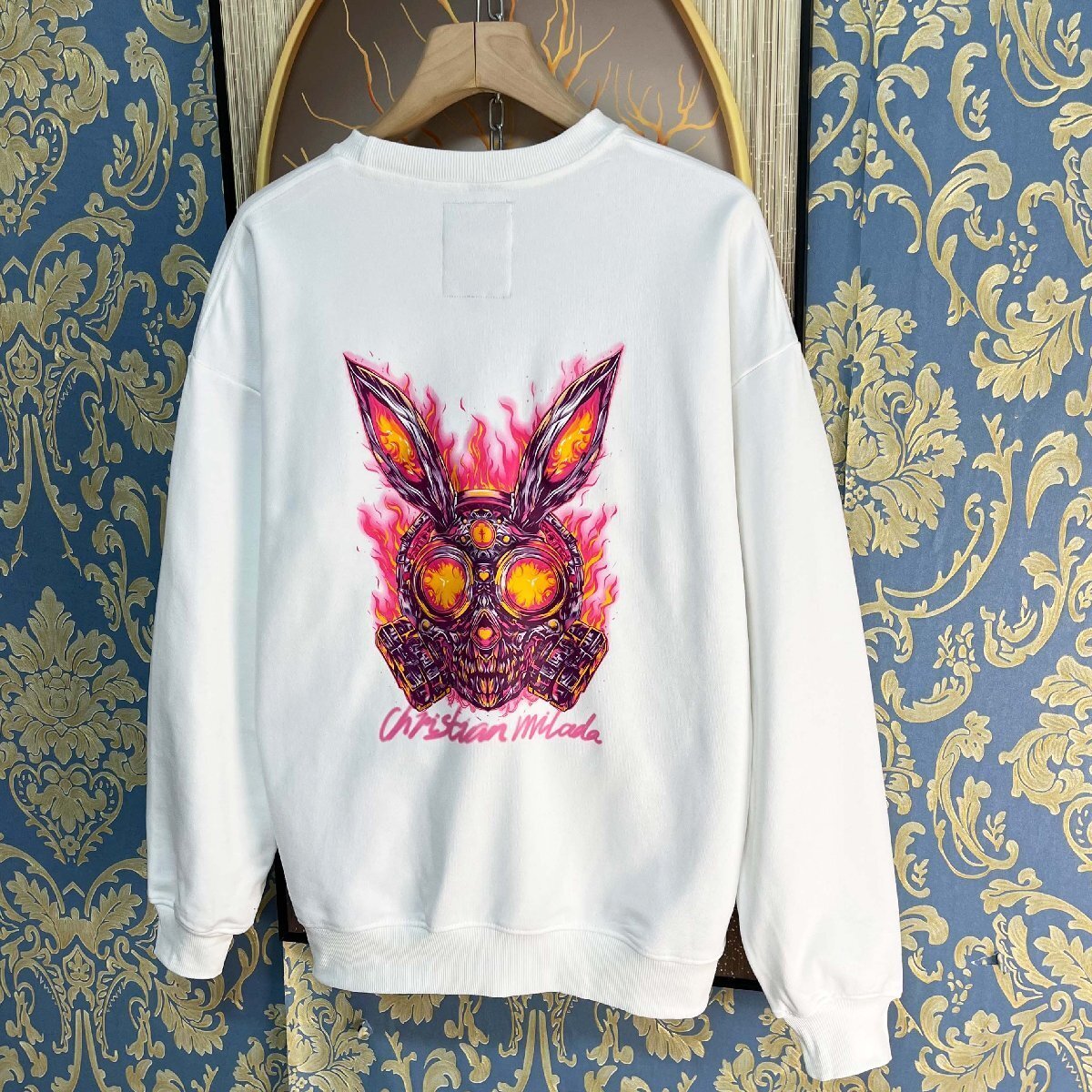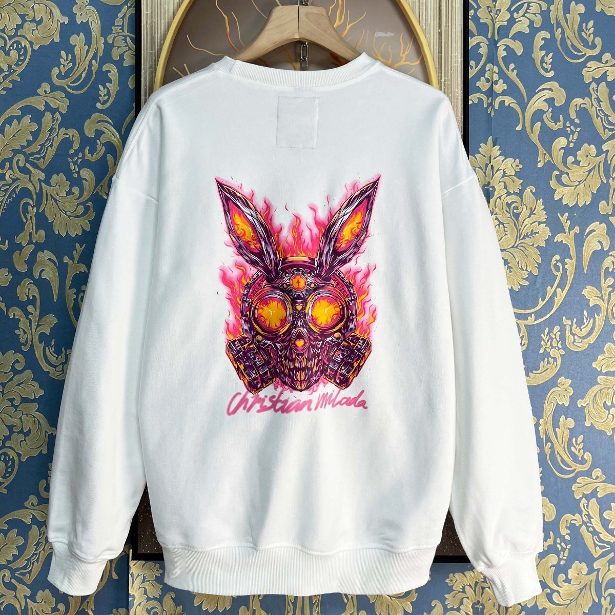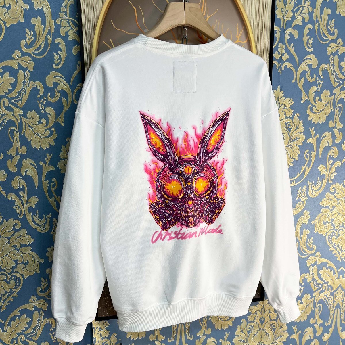 定価4万★christian milada・ミラノ発・トレーナー★エジプト綿100% 個性 柔らか 丸首 ラビット スウェット トップス ストリート 街着 XL/50サイズ