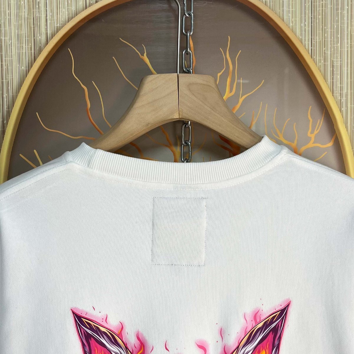 デザイン面では、シンプルな無地のフロントに対し、背面に大胆なサイズで施されたラビットモチーフが目を引きます。程よく個性を演出しつつも、派手すぎず、着る人のスタイルに自然に馴染みます。