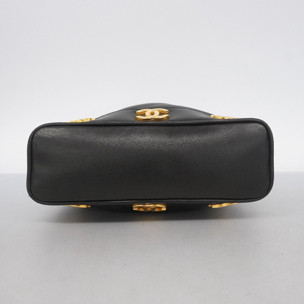 【5ob0948-h】シャネル ハンドバッグ トリプルココ チェーン ラムスキン ブラック ゴールド金具【中古】レディース