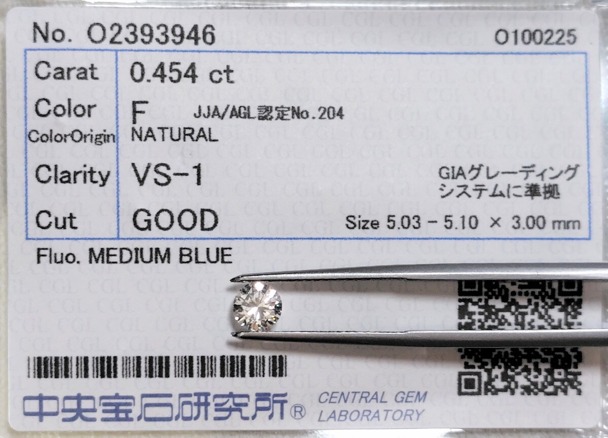 【11/15★安値〜】天然ダイヤモンド ルース 0.454ct F VS1 鑑別 CGL│B1725gl 【0.4ct】 ダイヤ diamond