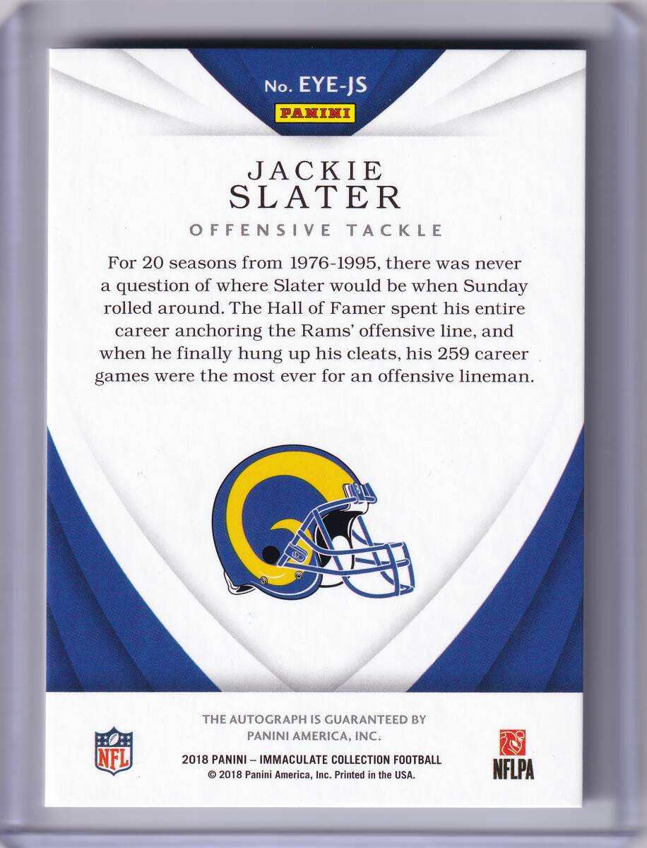【NFL】JACKIE SLATER 直筆サインカード 99枚限定 2018 PANINI IMMACULATE FOOTBALL AUTOGRAPH CARD / ジャッキー・スレイター / AUTO
