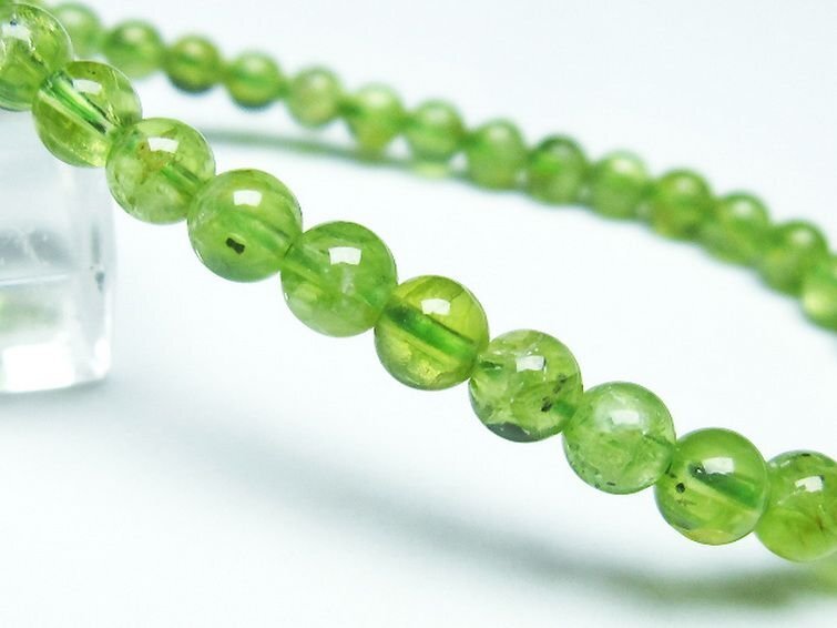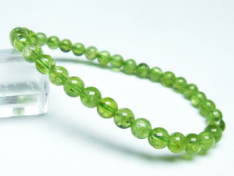 | ■商品名: ペリドットブレスレット ■商品ID: T283-10126 ■商品重量:約 9g ■商品サイズ:内周約:158mm(±5mm)粒直径約:5mm(±0.5mm) 【ペリドット(橄欖石)】 ペリドットは陽光を透かした夏の葉のような、明るく透明な黄緑の石です。その外見からも8月の誕生石として相応しく、明るく闇を吹き飛ばすエネルギーを持つとされています。 太陽の石とも呼ばれるペリドットは、闇夜でも輝く性質から、暗闇に光をもたらし困難の中でも希望を見出す力があると古くから信じられてきました。自身の持つ暗いエネルギーを発散させ、太陽の光を当ててくれるとされています。ネガティブなエネルギーから身を守るお守りとしても有効とされています。 暗い妄想や怒り、悲しみなどのマイナス感情が気づかぬうちに沸いてくる時には、元となる心の傷を癒し明るく前向きに進めるように手助けするとされています。また、自信をなくして落ち込んでいる時には、希望をもたらすとされていますので、落ち込み傾向にある方にもお勧めです。 ■ワンポイント情報 出会いを恋に発展させたり、社交性を広げ縁や人脈を増やすとされ、意中の人にも上手く近づけるようになるとされていますので、片思いの人の強力なお守りといえるかもしれません。また浮気がちな相手に持たせると浮気封じになるとされていたり、家庭を円満にするとされていますので既婚者にもお勧めです。 |