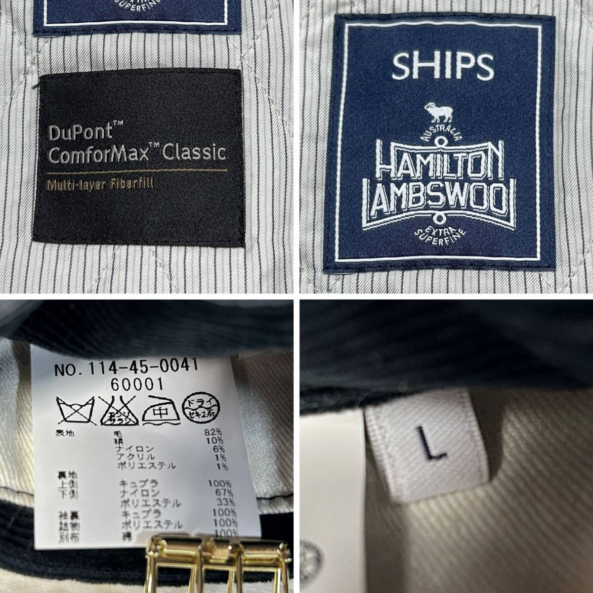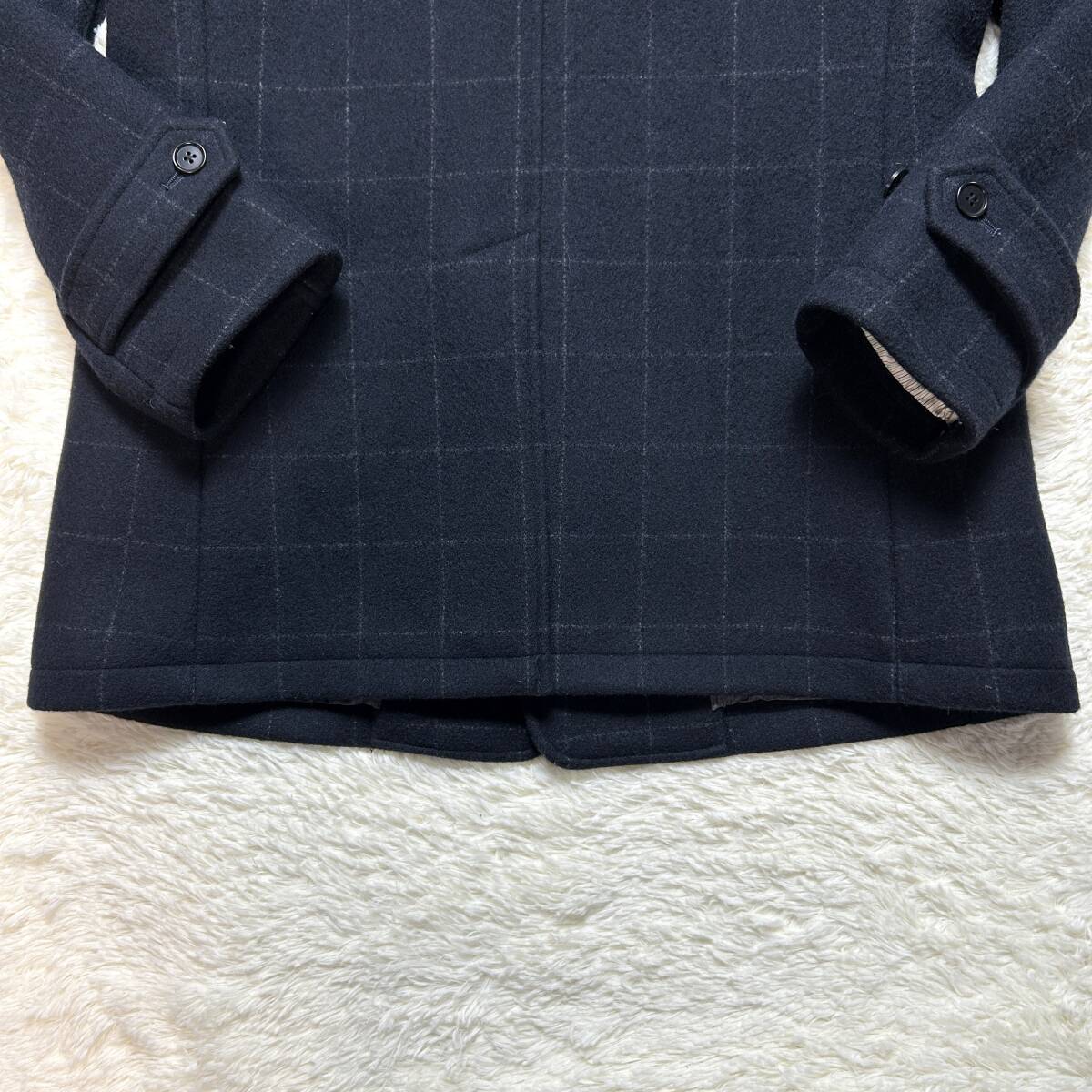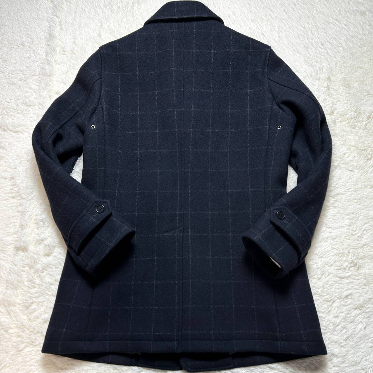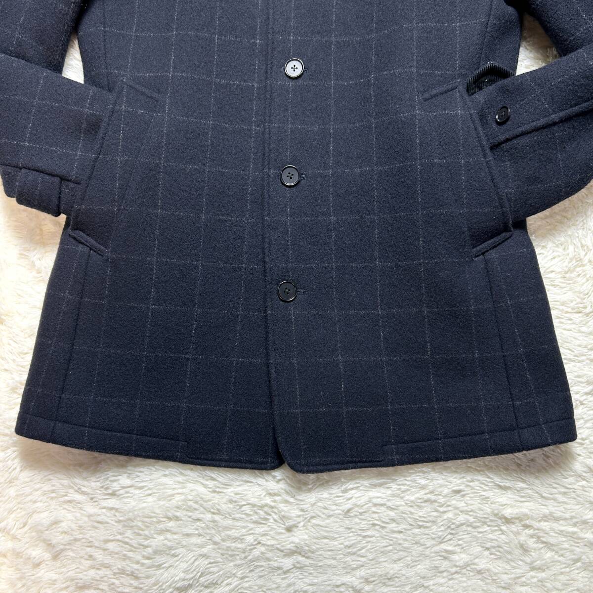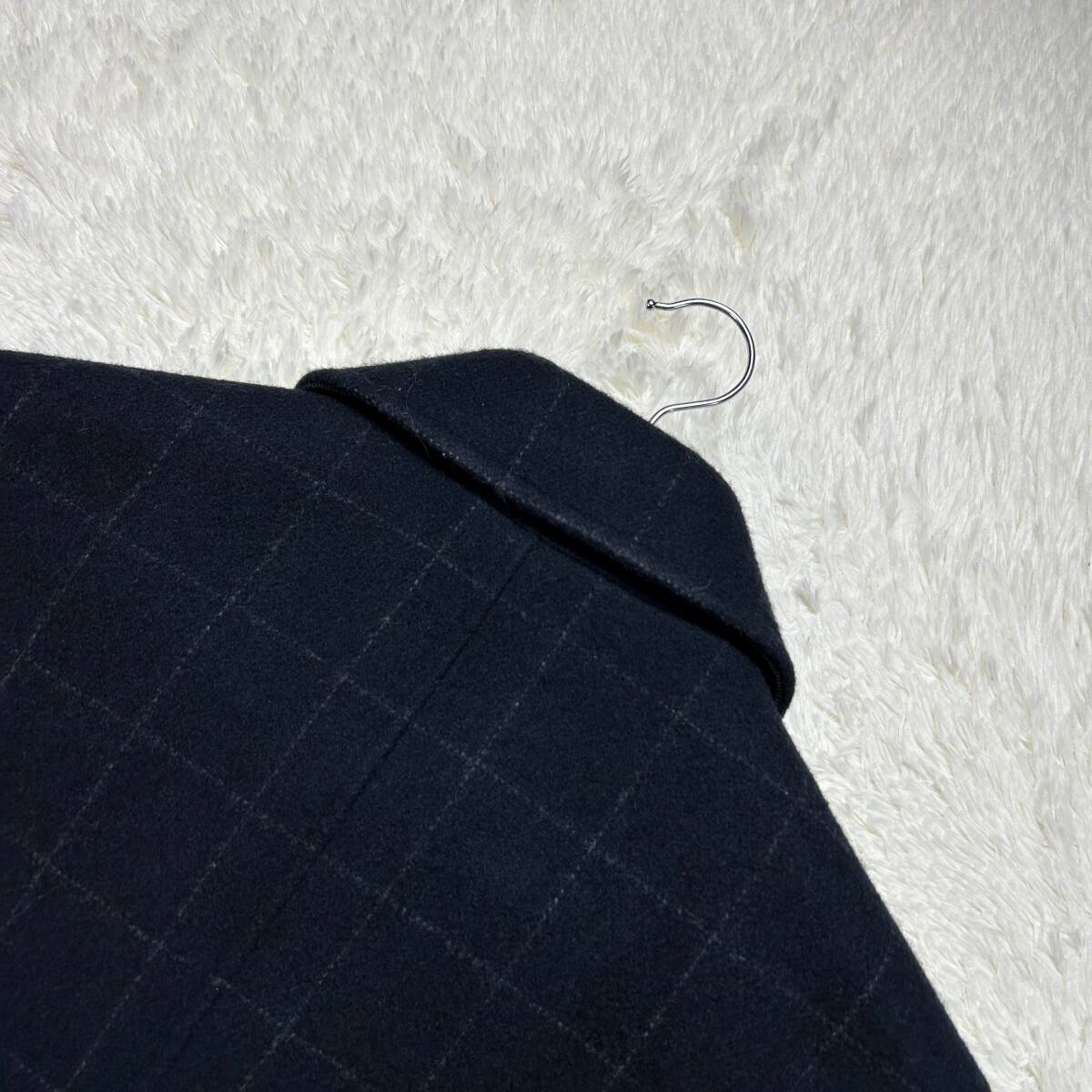 極美品/極上ハミルトンウール/L◎SHIPS シップス ステンカラーコート チェック柄 シルク混 ダークネイビー メンズ カジュアル アウター