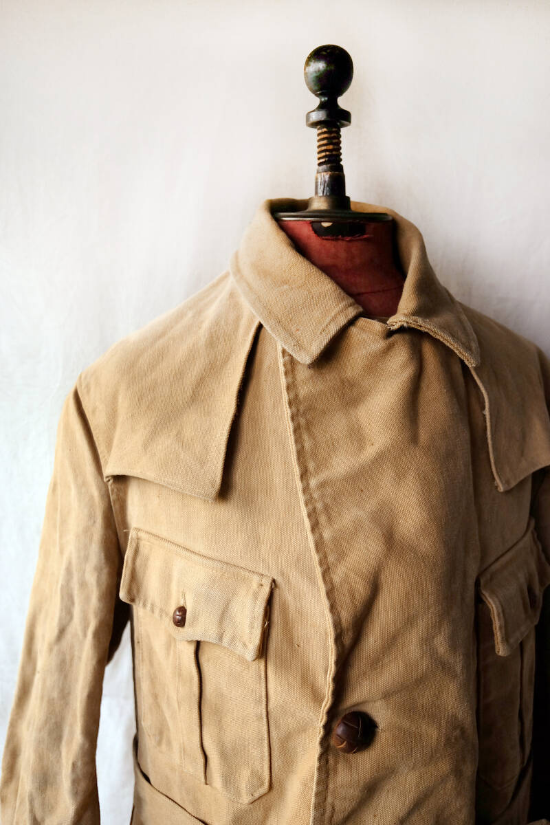 1920's 1930's フランス ヴィンテージ メティスキャンバスワークジャケット カーコート ハンティング ウッドボタン 20s 30s ベスト コート