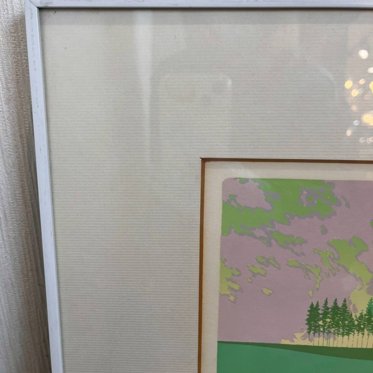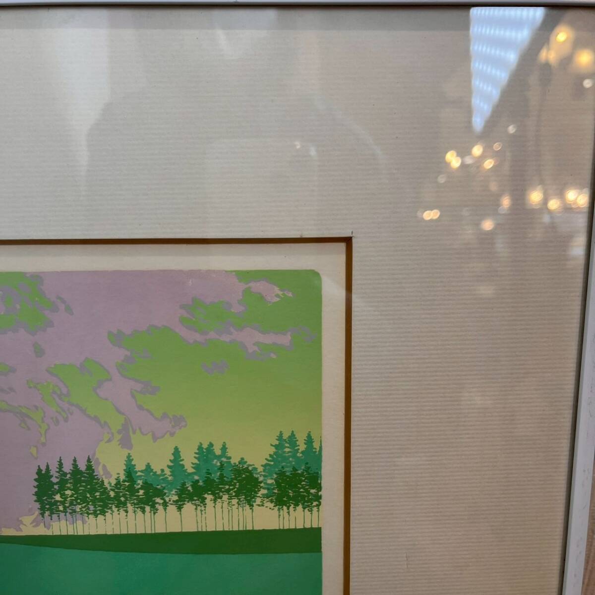 北海道の豊かな自然や四季折々の情景を絵にする本間武男作品。特に、水面の光の効果や色彩に特徴があり、見る人に安らぎを与えます。彼のシルクスクリーン作品には、ラベンダー畑やポプラの木、湖水の風景など、北海道を象徴するモチーフが多く見られます。