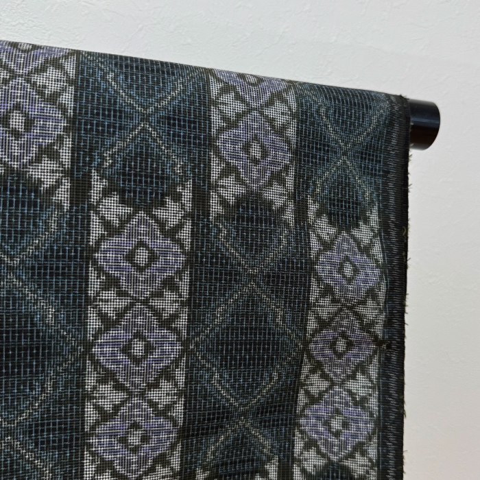 村山大島紬 反物 アンサンブル普段着として重宝するデザイン!和裁の練習や洋服にもお役立てください!少々難あり!反物を広げると両端がつったかんっじで少したるみが出ます(湯通し等で伸びるかは分かりません。)幅 : 約37cm長さ : 約20.5cm絹100%※仕立ては承っておりません。